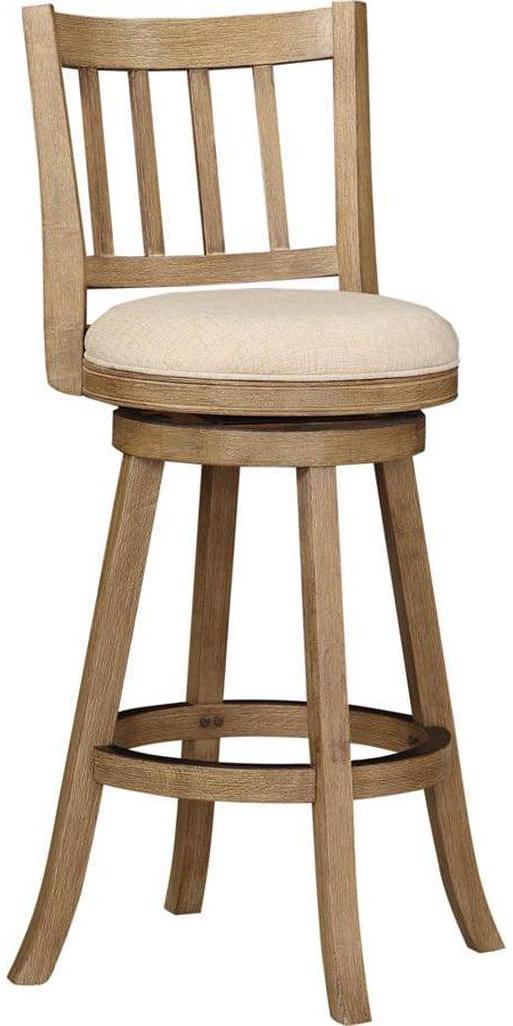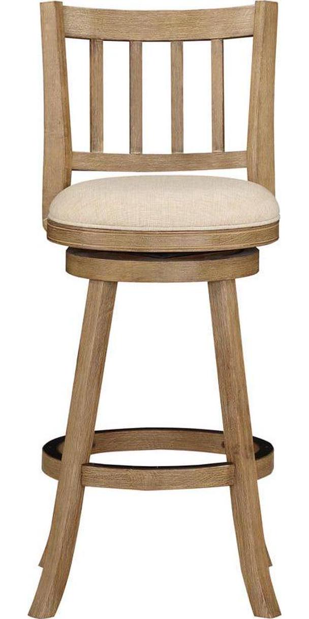 The Sheldon Bar Stool puts a twist on a simplistic design. Adored for its stylish multistep wire-brush finish and accredited engineering. Available in a driftwood gray wood finish with a choice of oatmeal and ivory linen upholstery. Both options are constructed with hardwood, high density foam cushioning and guaranteed to last. The Sheldon also features a full-ring footrest protected with a metal kick plate on top, double seat apron and a ball bearing steel swivel plate which provides a flawless three hundred and sixty degree swivel. Available in 24 inch, counter height as well.