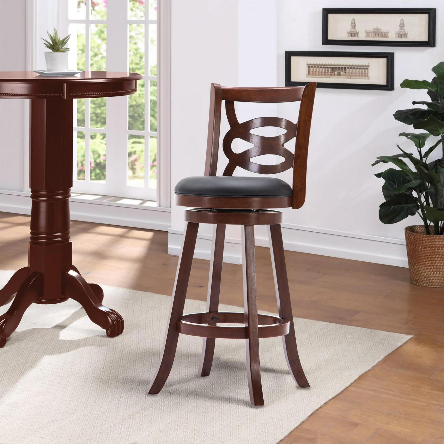 Boraam Siena 29in. High Back Swivel Wood Kitchen Bar Stool – Cherry Finish
