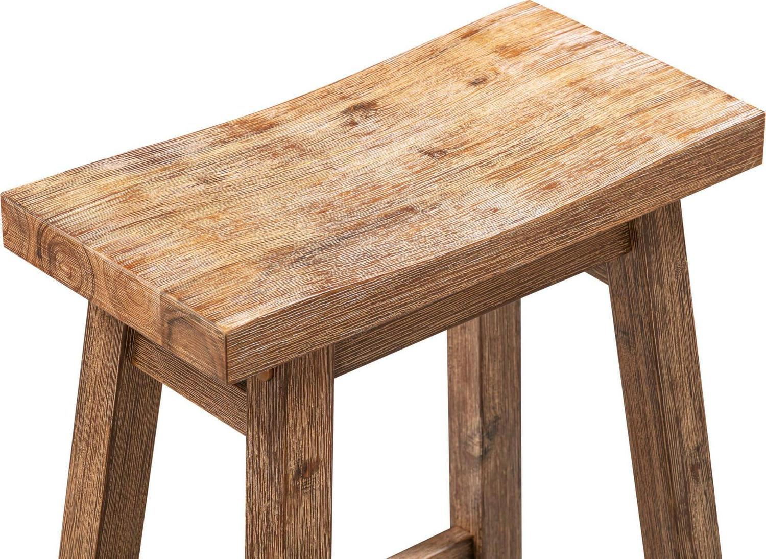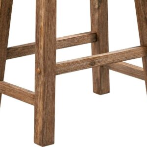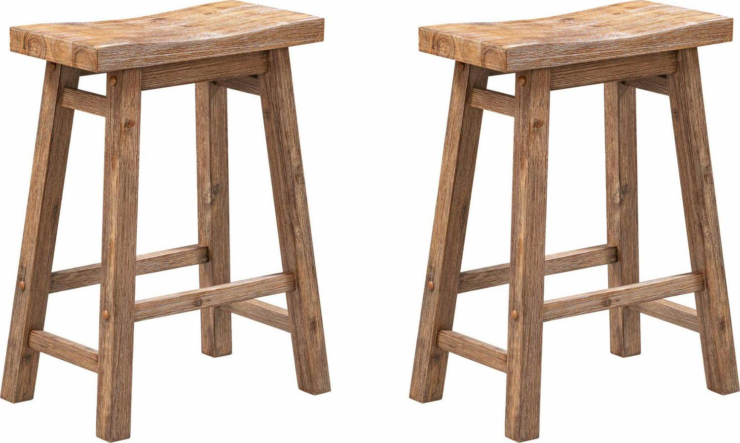 Boraam Sonoma 24-inch Counter Height Backless Saddle Wood Counter Stool – Barnwood Wire-Brush Finish, Set of 2