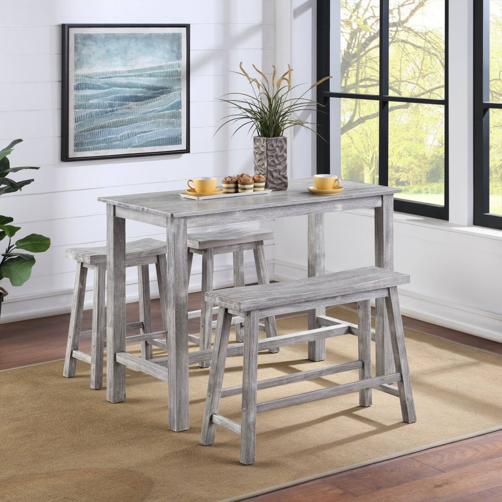 Table Dimensions: 36H x 47.25W x 24D in. Stool Dimensions: 24H x 17.75W x 9D in. Bench Dimensions: 24H x 33W x 9D in. 100% acacia wood Choose from available finish options Contemporary design Set includes pub table, bench, and 2 stools Table Dimensions: 36H x 47.25W x 24D in. Stool Dimensions: 24H x 17.75W x 9D in. Bench Dimensions: 24H x 33W x 9D in. 100% acacia wood Choose from available finish options Contemporary design Set includes pub table, bench, and 2 stools Table Dimensions: 36H x 47.25W x 24D in. Stool Dimensions: 24H x 17.75W x 9D in. Bench Dimensions: 24H x 33W x 9D in. 100% acacia wood Choose from available finish options Contemporary design Set includes pub table, bench, and 2 stools