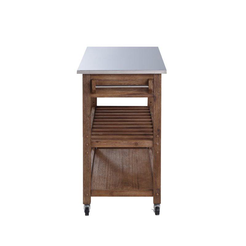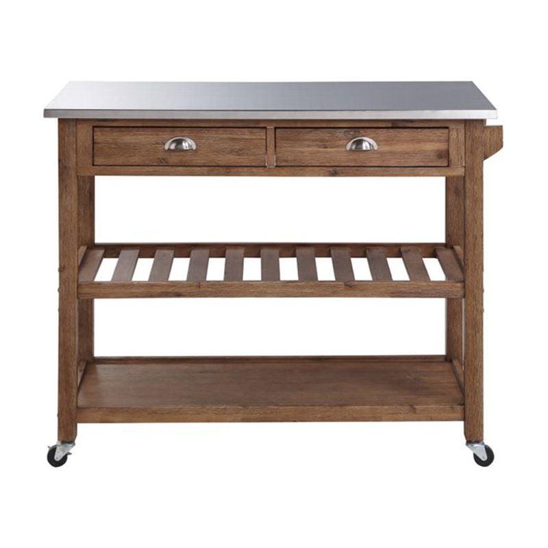 Boraam Sonoma Wood Kitchen Cart with Stainless Steel Top – Barnwood Wire-Brush Finish