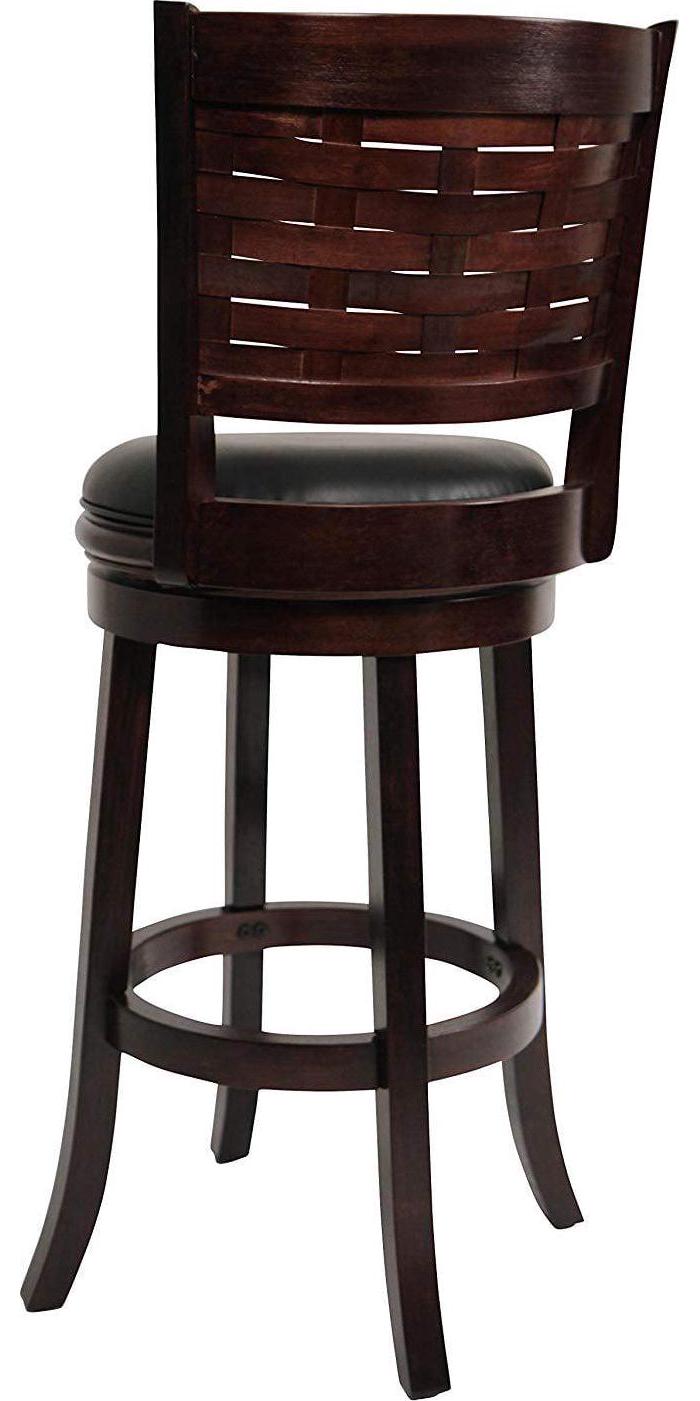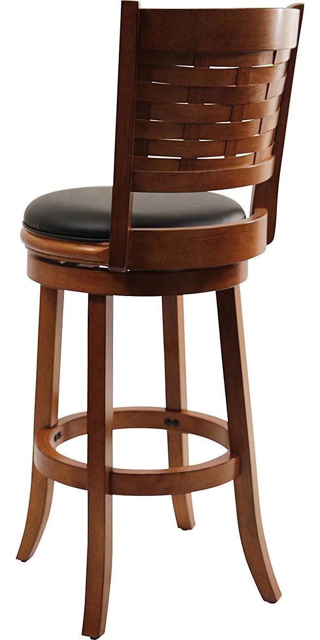 Seek out a style update with Boraam s Sumatra Swivel Stool. Offering a unique take on traditional design, this stool features a woven wood backrest crafted from rubberwood. The wood frame pairs with black leatherette upholstery (easy to wipe clean in case of spills or crumbs). A full 360-degree swivel offers you a full range of motion, while the steel ball-bearing swivel plate provides increased durability. Performance tested by leading testing facilities for your peace of mind. The Sumatra s effortless style looks at home in any kitchen, basement, game room, or home bar. Customize it even further by choosing from the available color and height options.