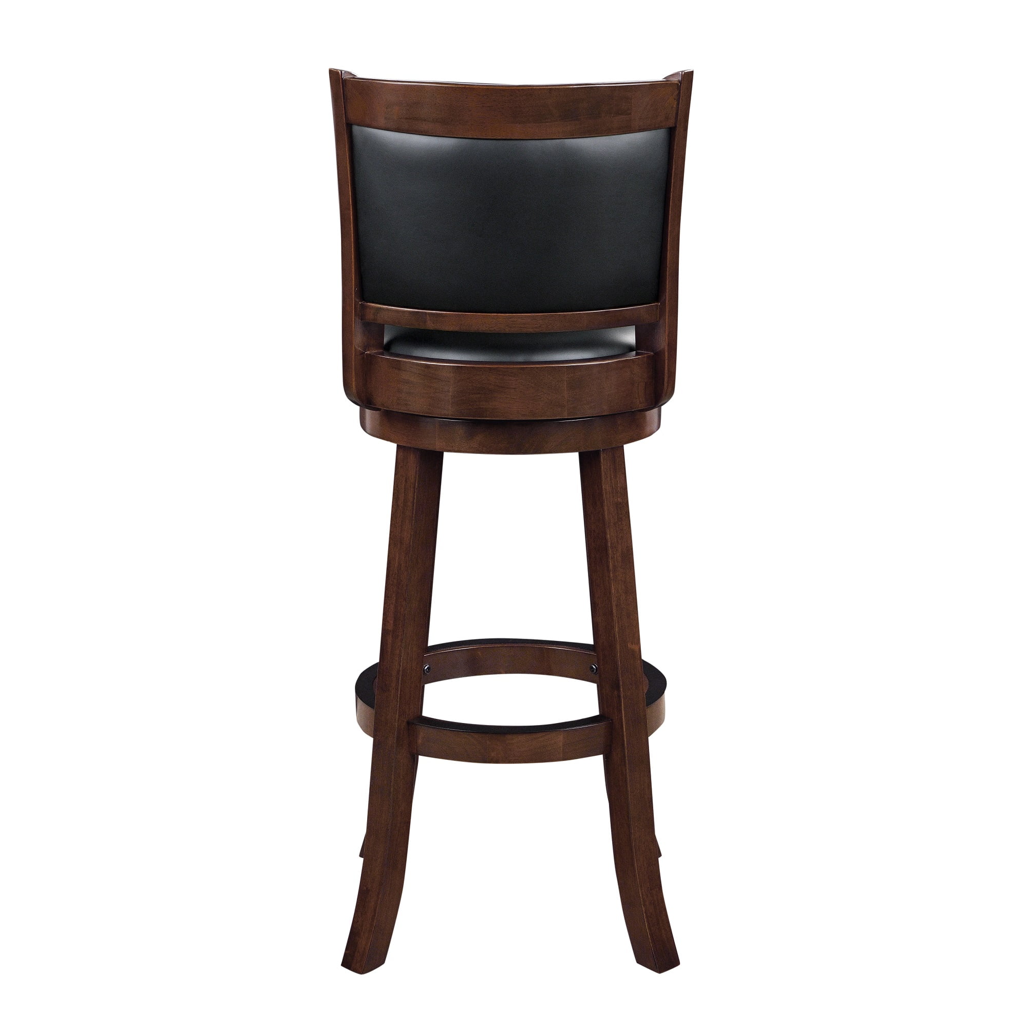 Constructed with solid eco-friendly rubberwood for years of use The wonderful full 360-degree swivel function allows for maximum mobility This bar stool provides more stability with a large base that prevents any rocking or movement potentially caused by using the swivel The soft high-density foam-padded cushioned seat and back offers extreme comfort for long lasting seating Multiple finish options available