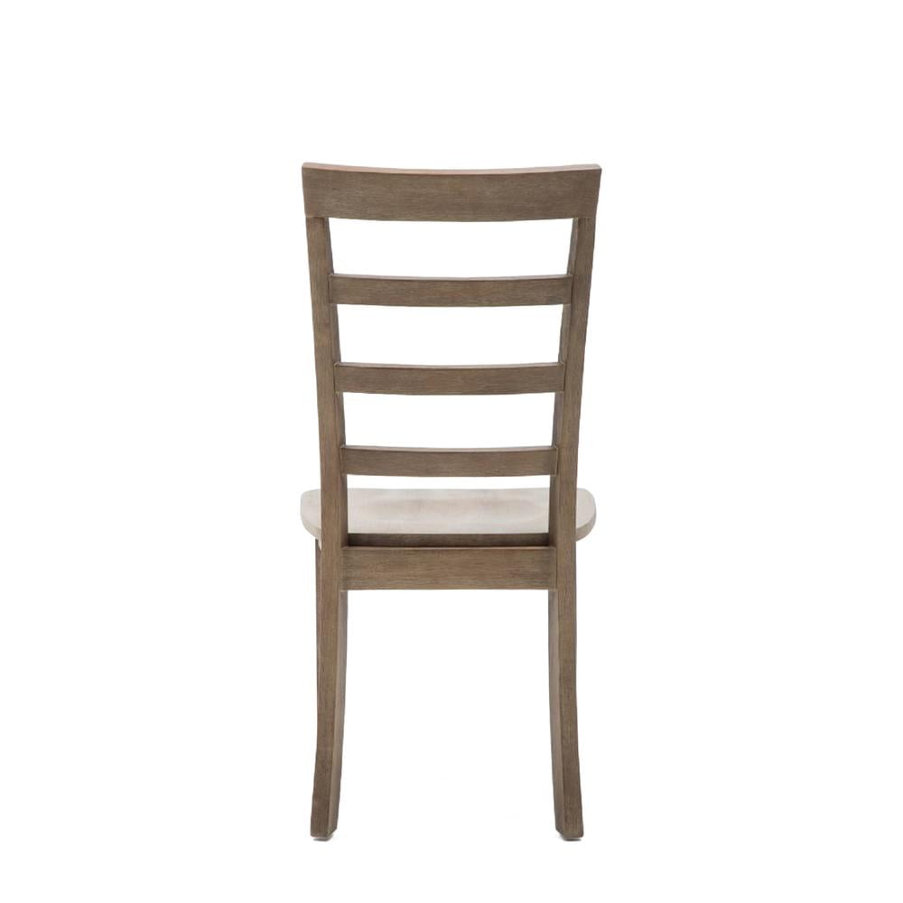 Boulder comes as a set of 2 Made with rubberwood Seat height is 18″ Ladderback design Molded seat for comfort Barnwood wire-brush finish Floor glides on feet