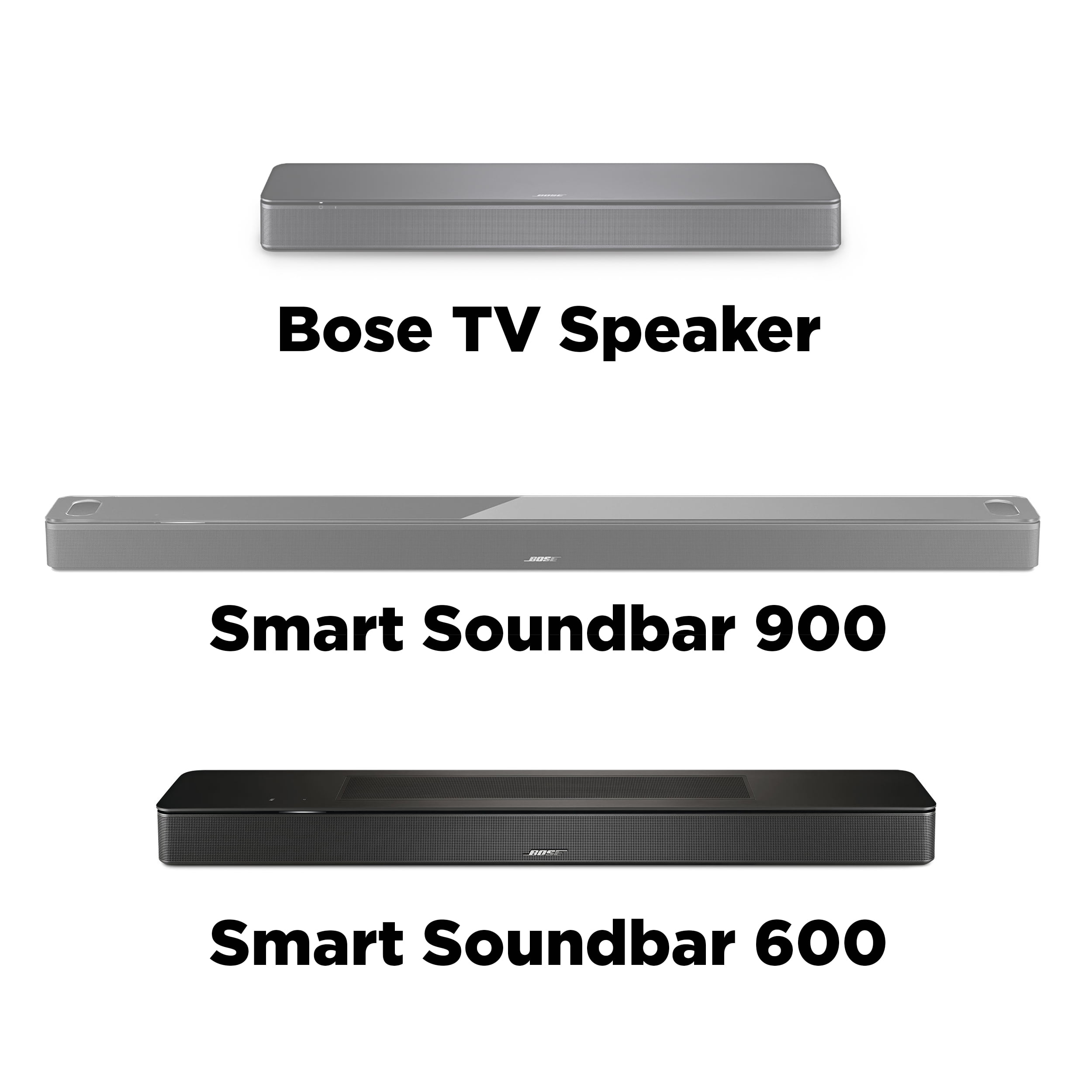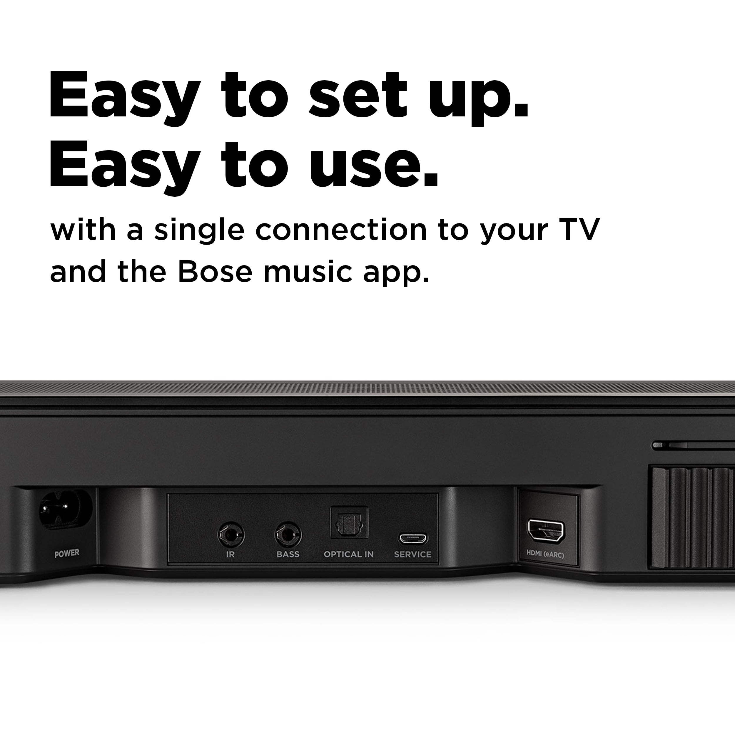 Bose Smart Soundbar 600 with Dolby Atmos and exclusive Bose technologies delivers fully immersive sound in a compact design Wi-Fi, Bluetooth, Apple AirPlay 2, Spotify Connect and Chromecast compatibility offer endless streaming options Quick and easy setup with one connection to the TV via the provided HDMI or optical audio cables Built-in Amazon Alexa and Bose Voice4Video provide voice control over your wireless soundbar, TV and cable box This Bluetooth soundbar can also be controlled by the included remote or the Bose Music app Use the Bose Music app to set up your TV soundbar, select your voice assistant, browse music and more Use Bose SimpleSync to pair with compatible Bose headphones or Bluetooth speakers. Connect at the press of a button Expand your sound system by adding an optional Bose bass module and/or surround sound speakers The Smart Soundbar 600 offers many of the same features as the 900 series in a smaller size