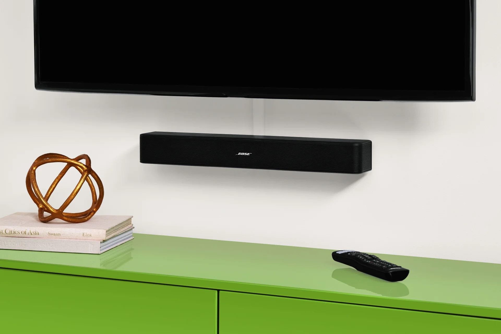 Bose Solo 5 Soundbar Bluetooth TV Speaker One-piece soundbar Dialogue mode makes every word even easier to hear Place the unit almost anywhere In front of the TV, on a shelf, or mounted on the wall Only one connection to your TV Bluetooth connectivity lets you stream music wirelessly Includes universal remote