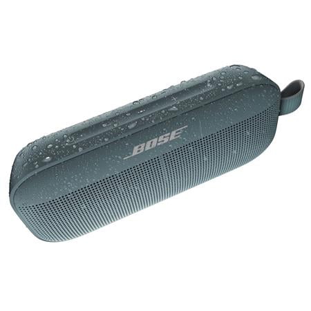 The SoundLink Flex Bluetooth speaker will fill your entire space with astonishingly clear, full sound and powerful bass you’ll feel in your soul. Featuring a modern design that blends durability, portability and utility, this wireless speaker is sleek enough for the home, yet rugged enough for the outdoors. Made with durable materials and a tough exterior, this dustproof and waterproof Bluetooth speaker was tested to withstand the elements and endure almost any mishap. Whether it’s upright on the kitchen counter, hanging from a backpack or flat on its back at the beach, Bose technology automatically detects the speaker’s orientation and creates natural, lifelike sound regardless of its position. With a small, easy-to-grab design and convenient utility loop, this rugged Bluetooth speaker is ultra-portable and designed to go wherever you go. Up to 12 hours of unplugged play time ensure this outdoor Bluetooth speaker lasts all day long. Use the built-in microphone to receive and make phone calls or access your phone’s native smart assistant through the multifunction button (i.e. Siri or Google Assistant). This portable Bluetooth speaker is easy to use and features voice prompts that talk you through Bluetooth pairing. The speaker remembers up to 8 most recently used devices. Use the Bose Connect app to personalize settings, access automatic software updates, and pair with other Bose Bluetooth speakers for L/R stereo pairing and party mode. Available in Stone Blue, White Smoke and Black.