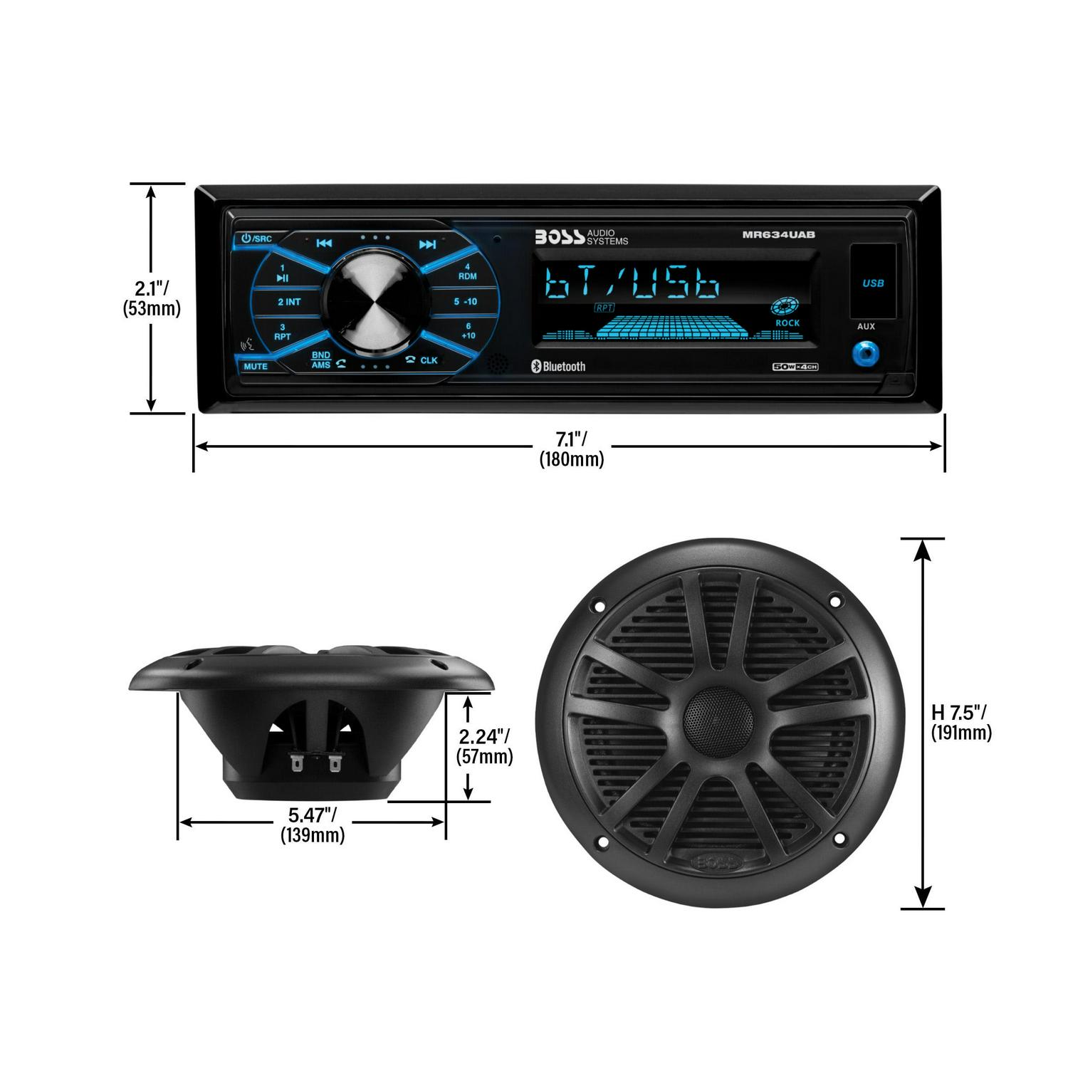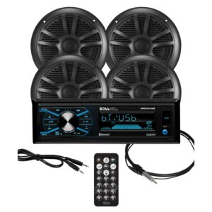 BOSS Audio Systems MCBK634B.64 Marine Boat Stereo Sound System Speaker Package – Single Din Radio Receiver Head Unit, No CD Player, Bluetooth Audio, Two 6.5 Inch Full Range Speakers, Dipole Antenna