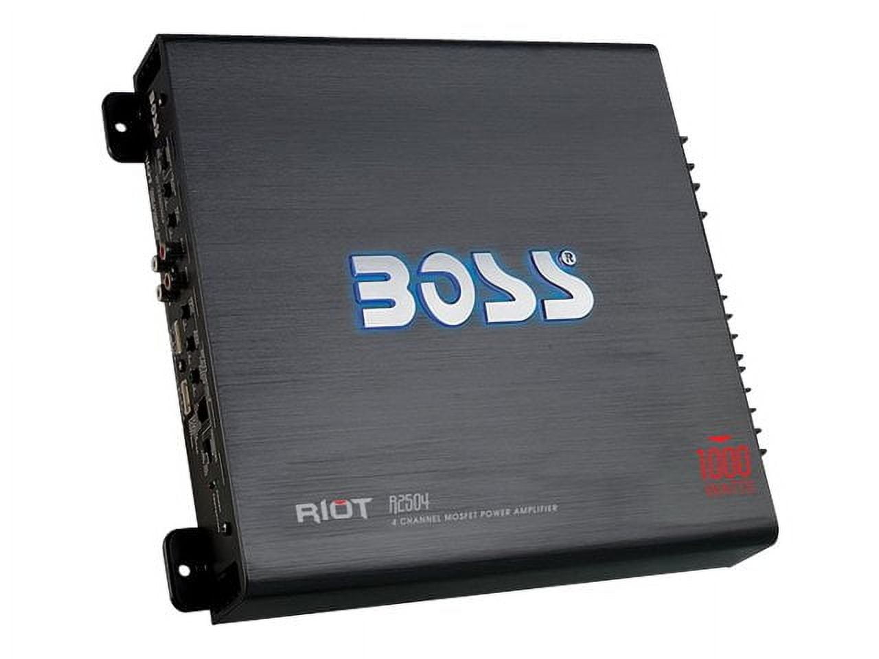BOSS Audio Systems R2504 Riot Series Car Audio Amplifier – 1000 High Output, 4 Channel, Class A/B, 2/4 Ohm, High/Low Level Inputs, High/Low Pass Crossover, Bridgeable, Full Range Get your music pumping with the Boss Audio Riot R2504 Class A/B 4-Channel Full Range Amplifier. This 2-Ohm stable Amplifier features 1000 Watts Max Power with a MOSFET power supply to maximize your music. Customize the sound with Variable Low Pass Crossover, High Pass Crossover and Bass Boost. Tweak the Bass with the Remote Subwoofer Control. Bridge channels for more power and flexibility. Amplifiers in the Riot Series are perfect for first time car audio buyers looking to add Bass, enhanced sound and performance to their system at an affordable price. Pump up the volume with the Boss Audio R2504. Power and Flexibility Take your audio experience up a notch with the Boss Audio Riot R2504 Class A/B 4-Channel Full Range Amplifier. With 1000 Watts Max Power and MOSFET power supply, this amplifier is ideal for your entire audio system. This 4-Channel Amplifier can power up your speakers, subwoofers or a combination of both. Customize the sound with Fixed High Pass Crossover, Variable Low Pass Crossover, Bass Boost and Remote Subwoofer Control. Bridge channels for more power and flexibility. Amplifiers in the Riot Series are perfect for first time car audio buyers looking to add bass, enhanced sound and performance to their system at an affordable price. Class A/B Full Range 4-Channel, MOSFET Power Supply 1000 Watts @2-Ohms Max Power 188 Watts x 4 RMS @2-Ohms High and Low Level Inputs Fixed High Pass Crossover, Variable Low Pass Crossover, Bass Boost Remote Subwoofer Control Bridgeable