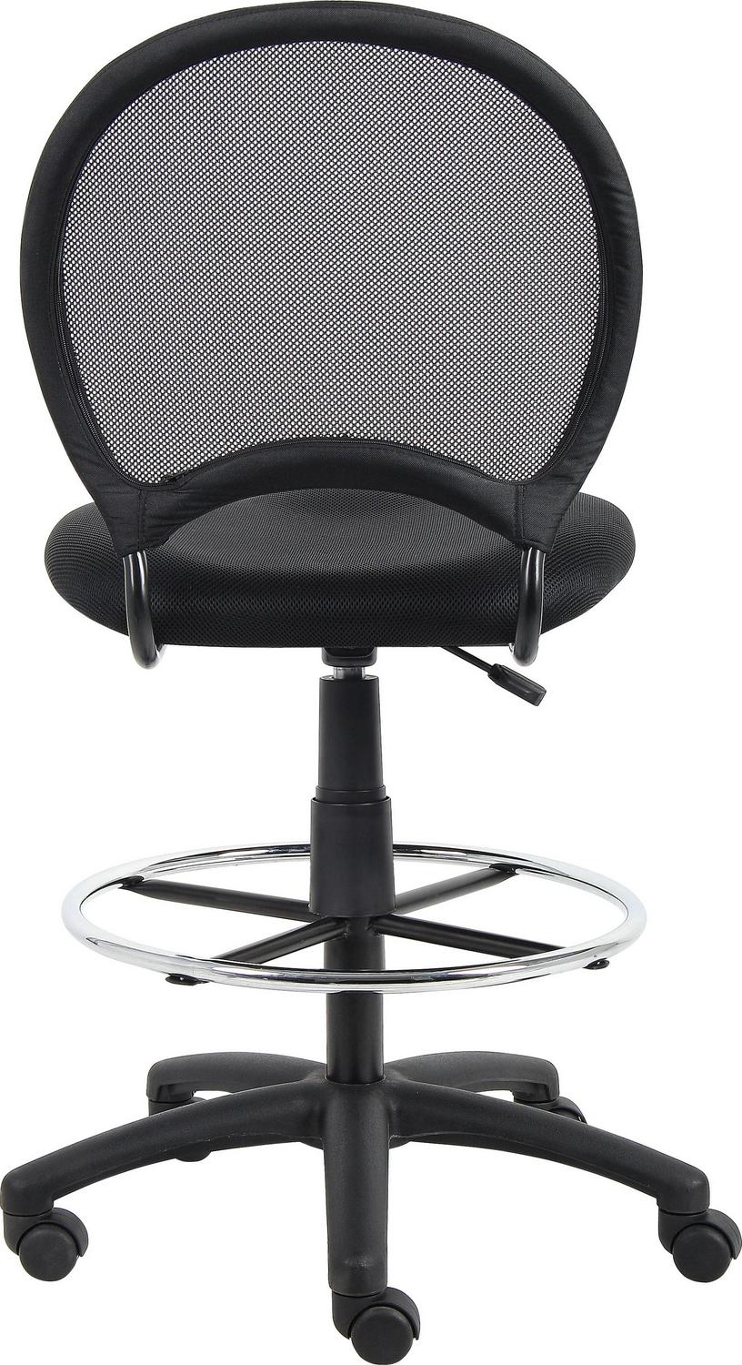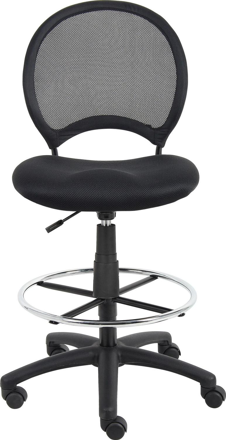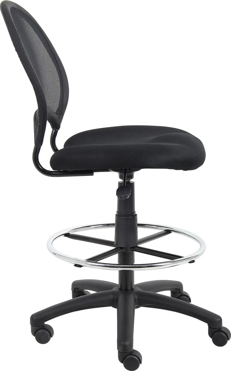 Assembly Required The Boss drafting chair is perfect for working at home. This black chair has an open-mesh back and thick padding on the seat, giving you both comfort and support where you need it most. The pneumatic gas lift allows you to adjust the seat easily, and the added chrome foot ring gives you a comfortable place to put your feet.