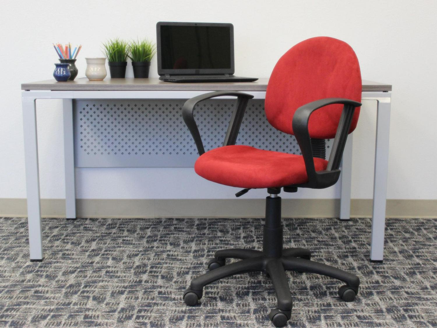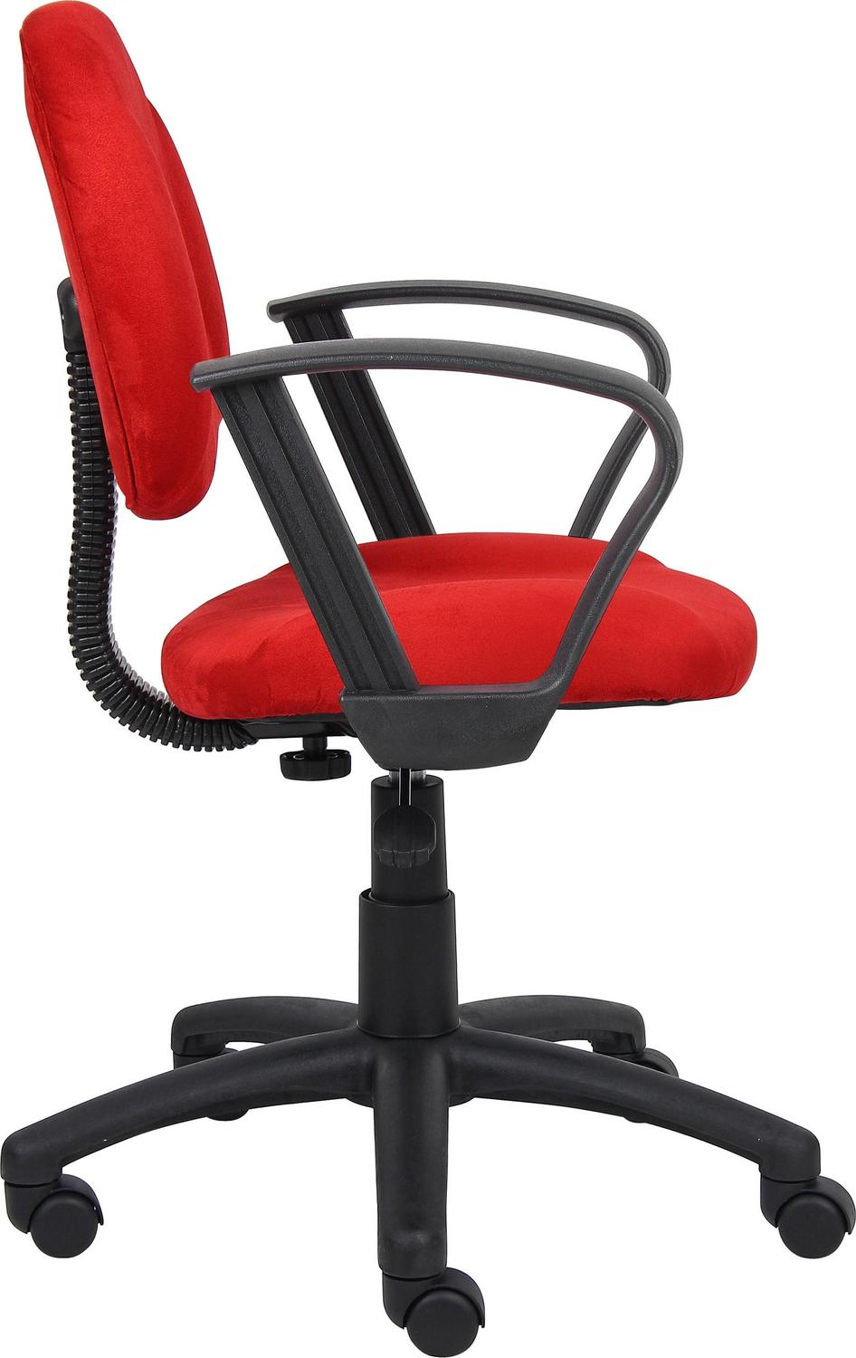 – Boss Red Microfiber Deluxe Posture Chair with Loop Arms.