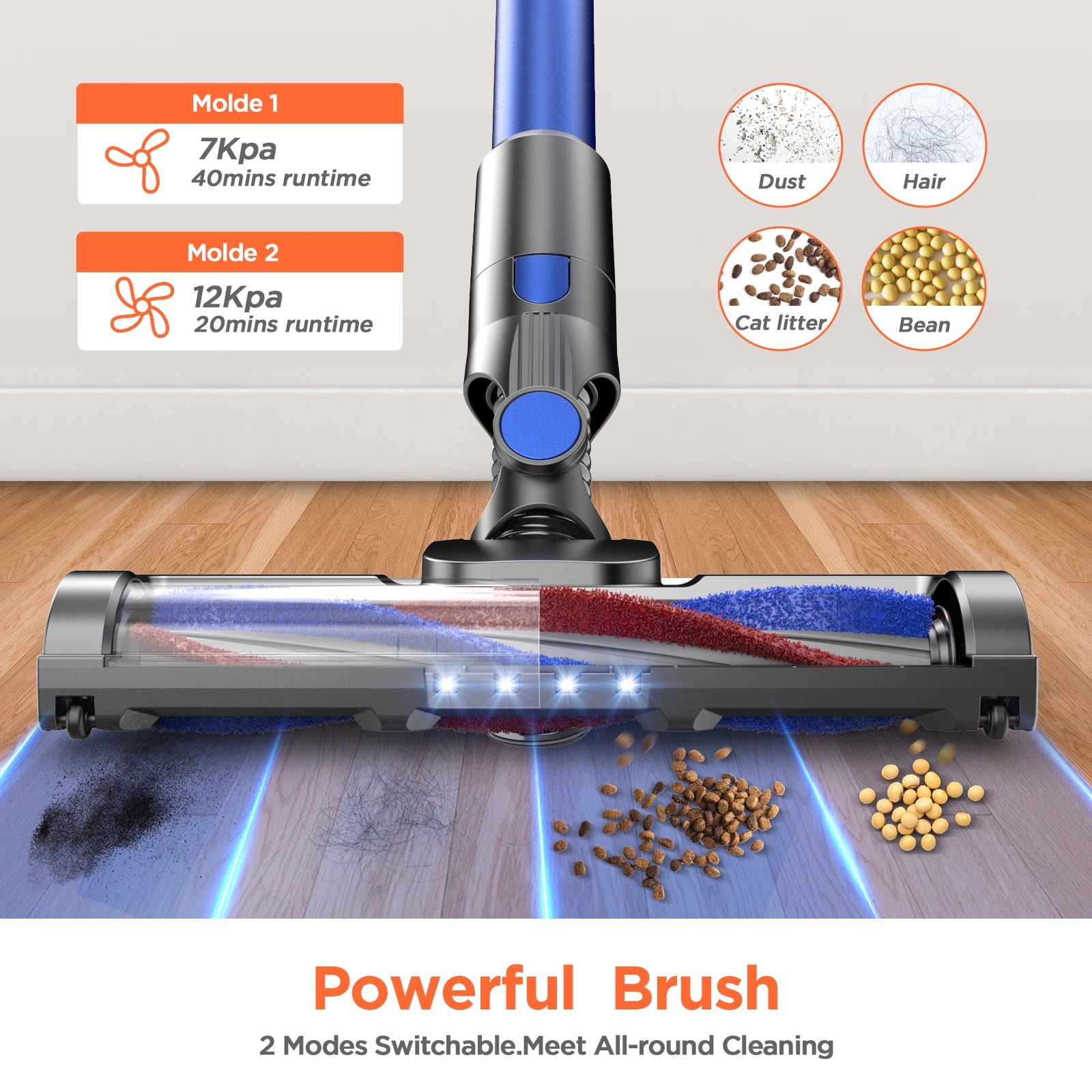 Powerful Suction Suction 150W Brushless Motor Newly Upgraded 2 in 1 Roller Brush 5 Stages High-Efficiency Filtration System 80,000 rpm/min 2024 Upgraded Brushless Super Long-lasting Battery Flexible LED Brush Head 4 Bright LED Lights 2 Charging Ways Detachable Separate Rechargeable Battery Up to 40Mins Runtime Two modes easy to switch Suitable for Hardwood floor 4 in 1 Handheld Vacuum Working Sound-level: ≤70 dB 0.8L Large Dust Cup Charging Time: 4-5 hours Cordless Vacuum Cleaner Cordless Vacuum 3 Year warranty