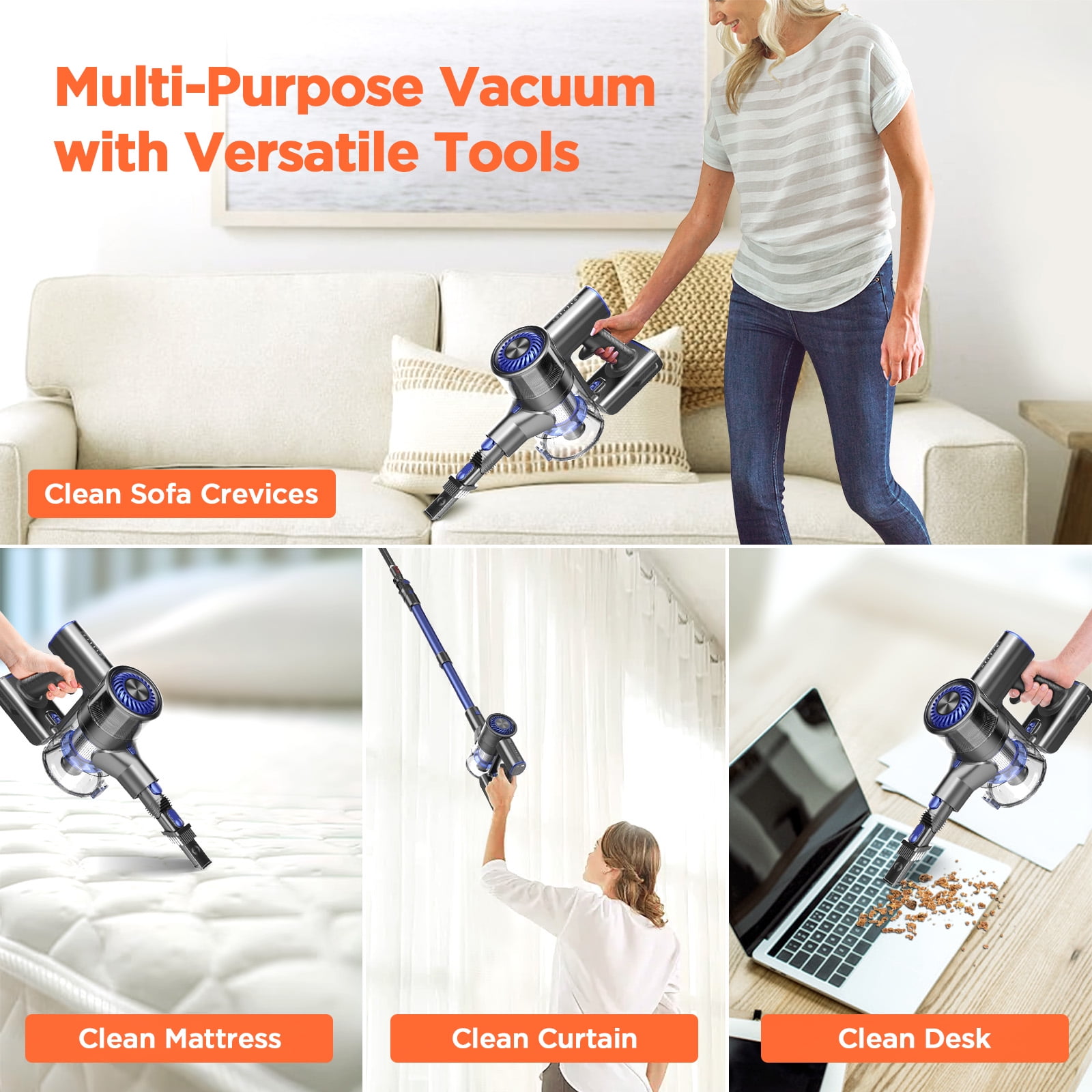 Bossdan Stick Vacuum Cleaner, 4 in 1 Cordless Vacuum Cleaner with Powerful Suction for Hardwood