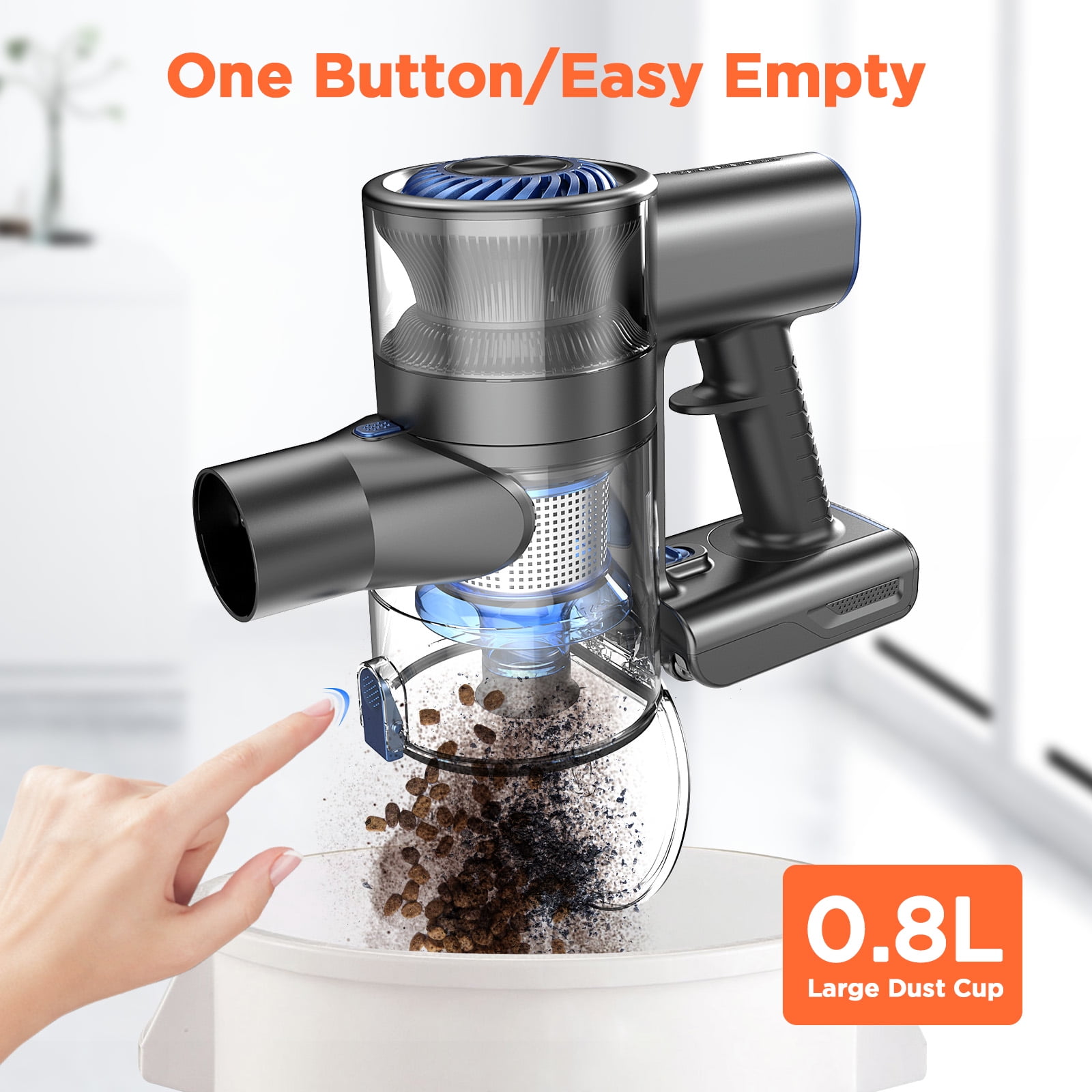 Bossdan Cordless Vacuum Cleaner offers a powerful suction with 150W advanced digital motor, effectively removing dirt and debris from various surfaces. With 2200mAh long-lasting battery providing over 35 minutes of runtime, clean large areas effortlessly. Bossdan cordless stick vacuum cleaner LED light ensure no dust is missed, even under furniture or in low light conditions, can easy tackle any cleaning task, from carpets to hard floors. Experience a new level of cleaning efficiency with our Hyper Power Suction Cordless Vacuum today! ✅ Hyper Power Suction — Outfitted with the advanced brushless motor, this cordless vacuum boasts a 25% more powerful suction, making stubborn dirt and dust removal effortless. ✅ Long-Lasting Runtime — With a high-capacity 2200 mAh battery, this cordless vacuum provides up to 35 minutes of continuous cleaning, allowing you to clean your entire home without interruption. ✅ 5-Stage Cyclone Filtration System — The advanced cyclone filtration system captures and separates dust and dirt from the air, ensuring that only fresh air is released back into your home. ✅ 4-in-1 Roller Brush — The versatile 4-in-1 roller brush works on various surfaces from hard floors to curtains and carpets without needing any brush replacement. Adjustable 180°swivel sideways and 90° up-down function easily clean in corners or hard-to-reach areas. ✅ Convenient & Noiseless Operation — This vacuum cleaner with super-light materials effectively reduces noise and offers a quiet cleaning experience. An ideal gift for family and friends who value cleanliness and tranquility at home. 【Warm Tip】: To ensure your vacuum maintains strong suction, please clean the filter regularly. Also, make sure the filter is completely dry before reinstalling it. 【Notes before using】: 1. Use the Original Adapter: Ensure you’re using the original adapter to avoid charging issues. 2. Check Connection Points: Inspect the charger and battery connection pins for any foreign objects or oxidation. Clean with a dry cloth if needed. 3. Monitor Indicator Lights: Look for a flashing red light, which indicates the machine is in protection mode. If you encounter any issues regarding battery life, please feel free to contact us, and we will to provide a solution.