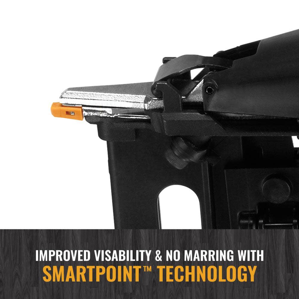 Features Smart Point Technology that allows for easy nail placement as a result of a smaller nose compared to current Bostitch nailers and no need to compress the contact trip to actuate the tool.