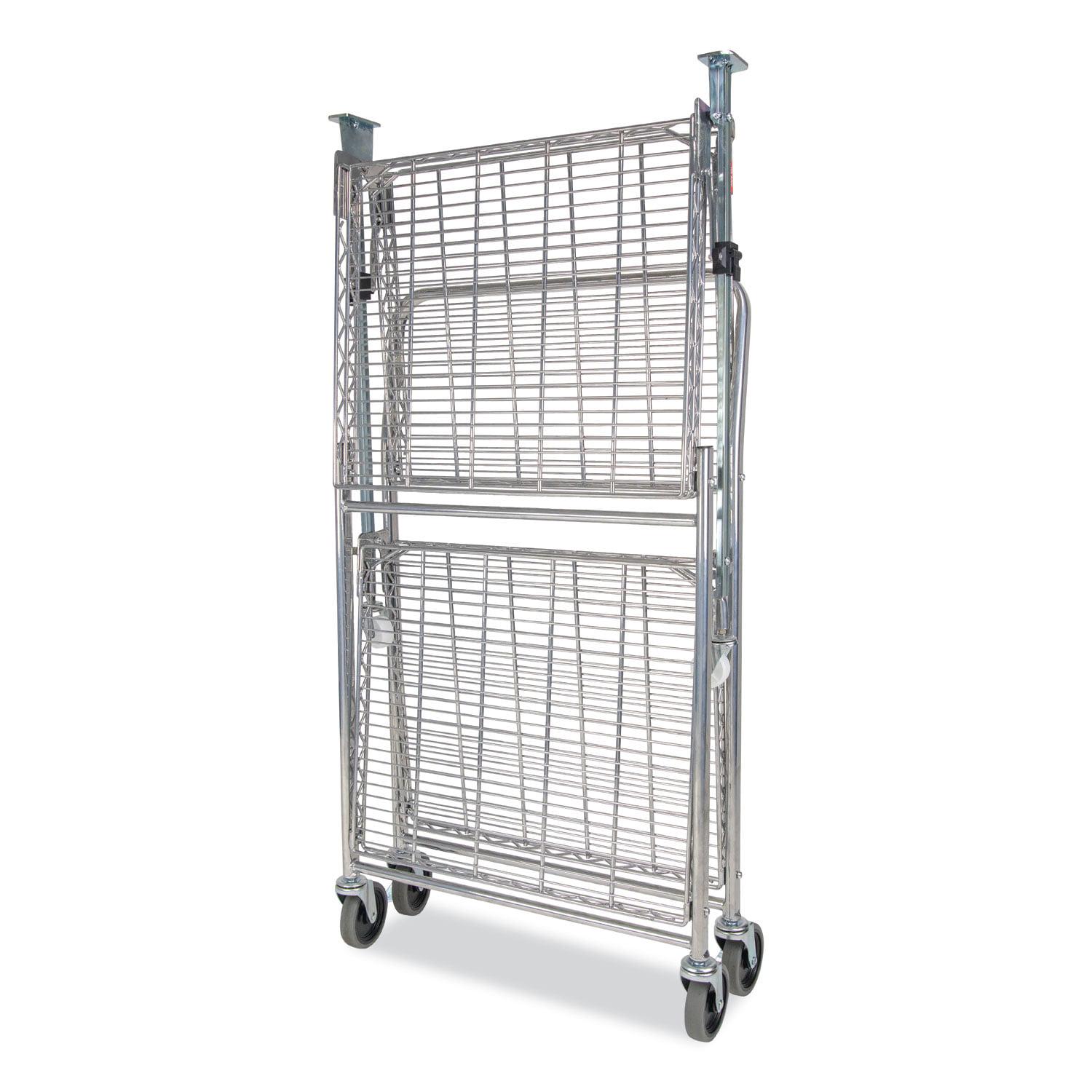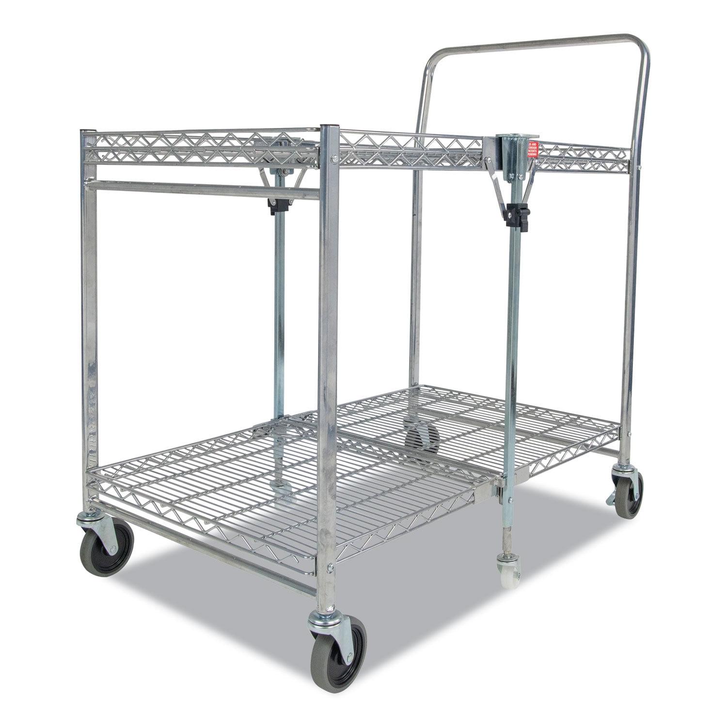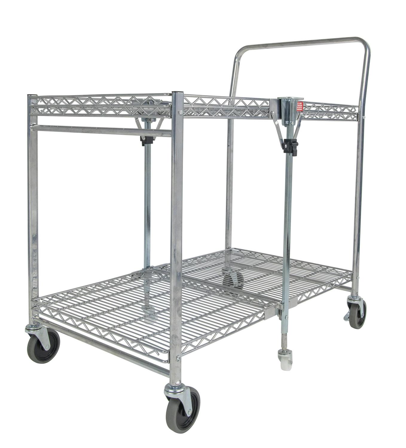 Storage space and location is the number one user issue with current cart designs. Our Bostitch Stowaway Folding Carts have a patented folding design that stores away in 4x less space! An optional wall mount bracket allows for easy storage behind a door or in an open space. It folds and unfolds in a fraction of a second with secure safety locks for the strongest durability. Dual shelves provide 1300+ square inches of storage space and can hold up to a massive 500 pounds of storage capacity. Durable, double chrome coated finish for easy cleaning and lifetime durability with six, medical style no-mar swivel wheels for quiet operation and easy maneuverability.
