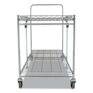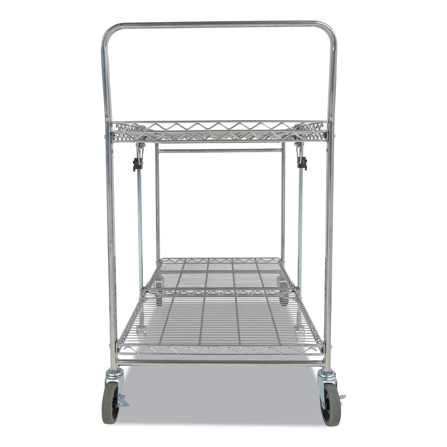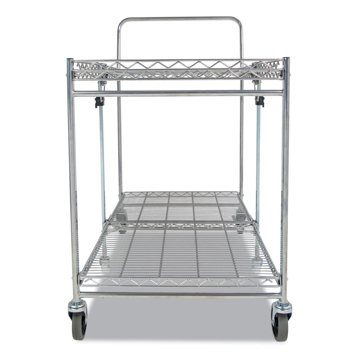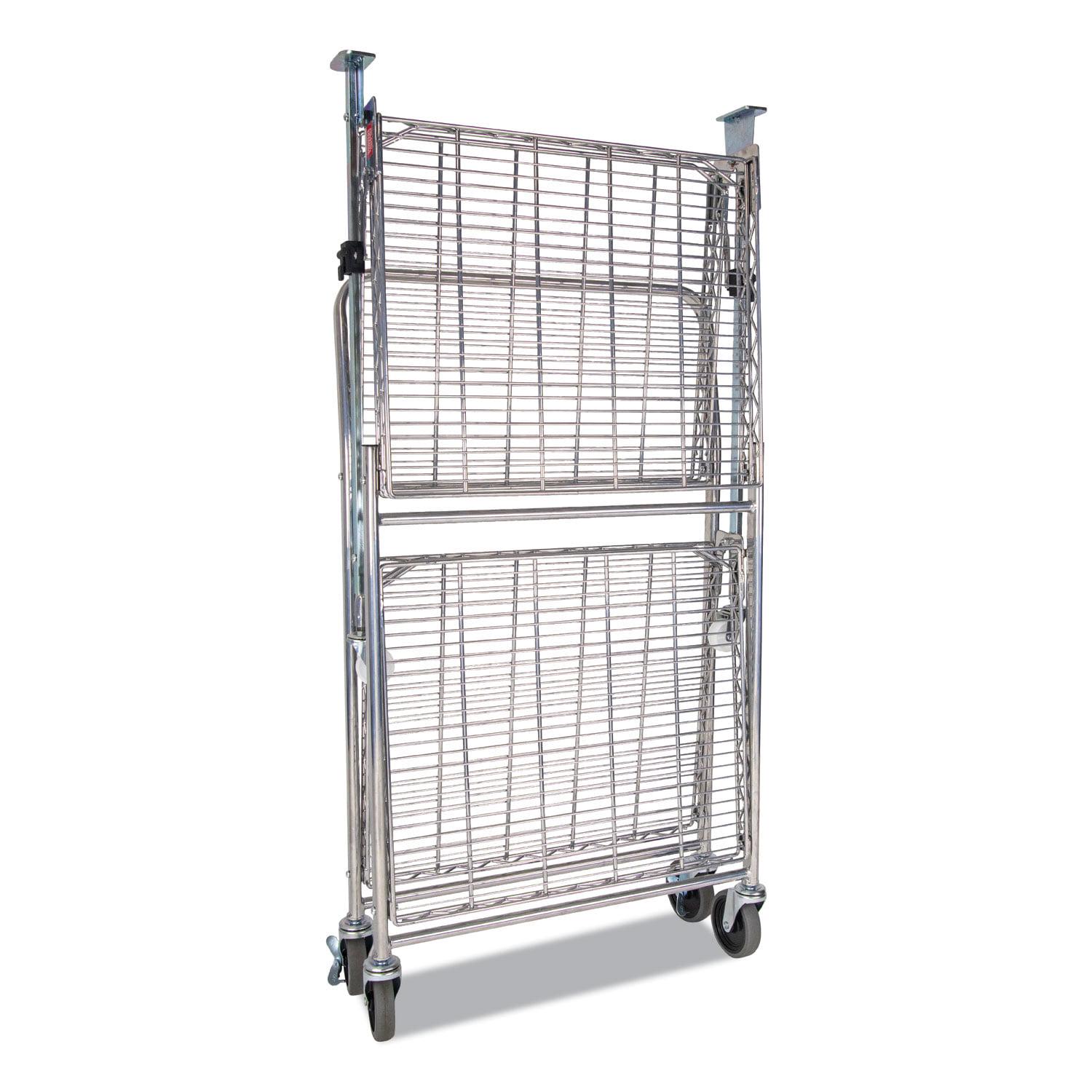 Storage space and location is the number one user issue with current cart designs. Our Bostitch Stowaway Folding Carts have a patented folding design that stores away in 4x less space! An optional wall mount bracket allows for easy storage behind a door or in an open space. It folds and unfolds in a fraction of a second with secure safety locks for the strongest durability. Dual shelves provide 1300+ square inches of storage space and can hold up to a massive 500 pounds of storage capacity. Durable, double chrome coated finish for easy cleaning and lifetime durability with six, medical style no-mar swivel wheels for quiet operation and easy maneuverability.