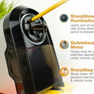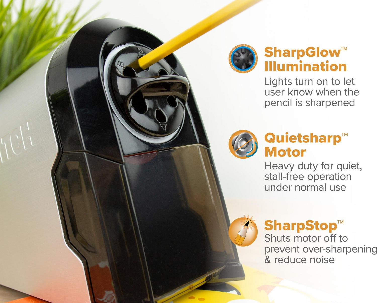 – Distraction-free environment: SharpStop shuts motor off when pencil tip is sharp while SharpGlow illuminates to inform you
