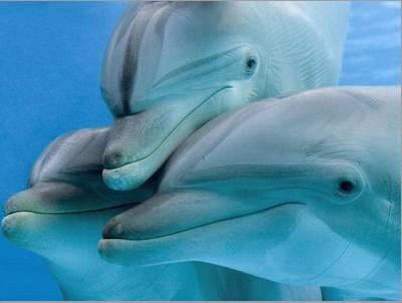 Bottlenose Dolphins, Three CloseUp of Heads Underwater, Animals Stretched Canvas Wall Art by Augusto Leandro Stanzani Sold by Art.Com