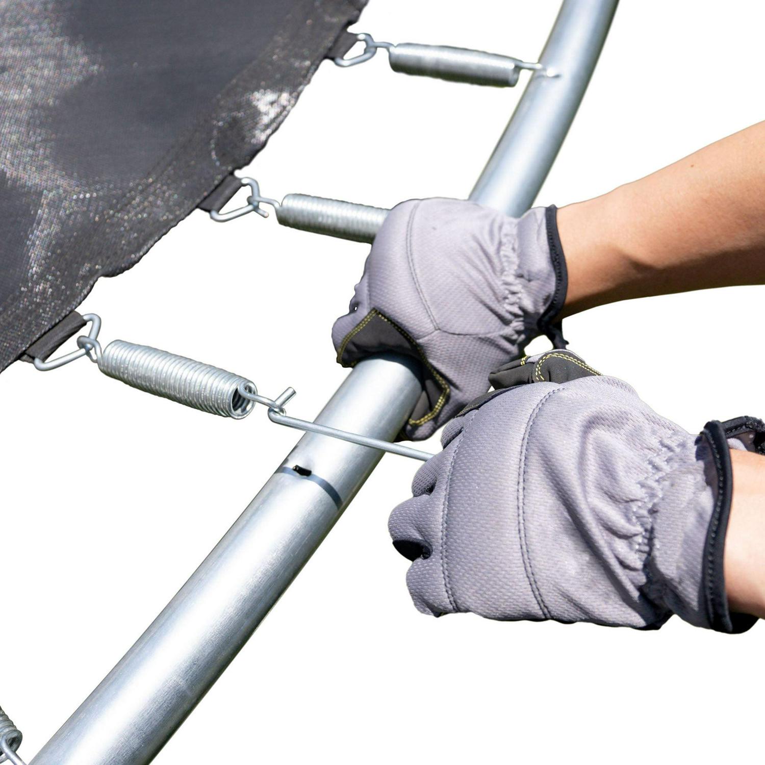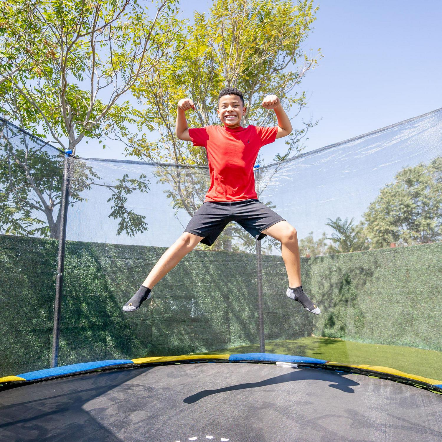 Kids will love bouncing on the Bounce Pro 12′ Trampoline with included safety enclosure. Bounce Pro is all about safety and encouraging kids to go out and exercise more! Powered by high quality springs and a jump park quality TenCate Permatron jump mat, kids can soar to a new height of backyard fun. The 6 pole enclosure system with UV resistant netting keeps kids safe inside the trampoline. The spring pad protector, jump mat and enclosure netting are all UV-resistant and tested to more than double the ASTM recommended safety standards. With its thick walled and double galvanized steel frame strengthened by the patented Double Welded frame plates, this trampoline features a 220 lb weight capacity. The Bounce Pro 12′ Trampoline meets or exceeds ASTM safety standards and will provide your kids with years of safe fun. To ensure safe, responsible use, please limit to 1 jumper at a time and always have adult supervision.