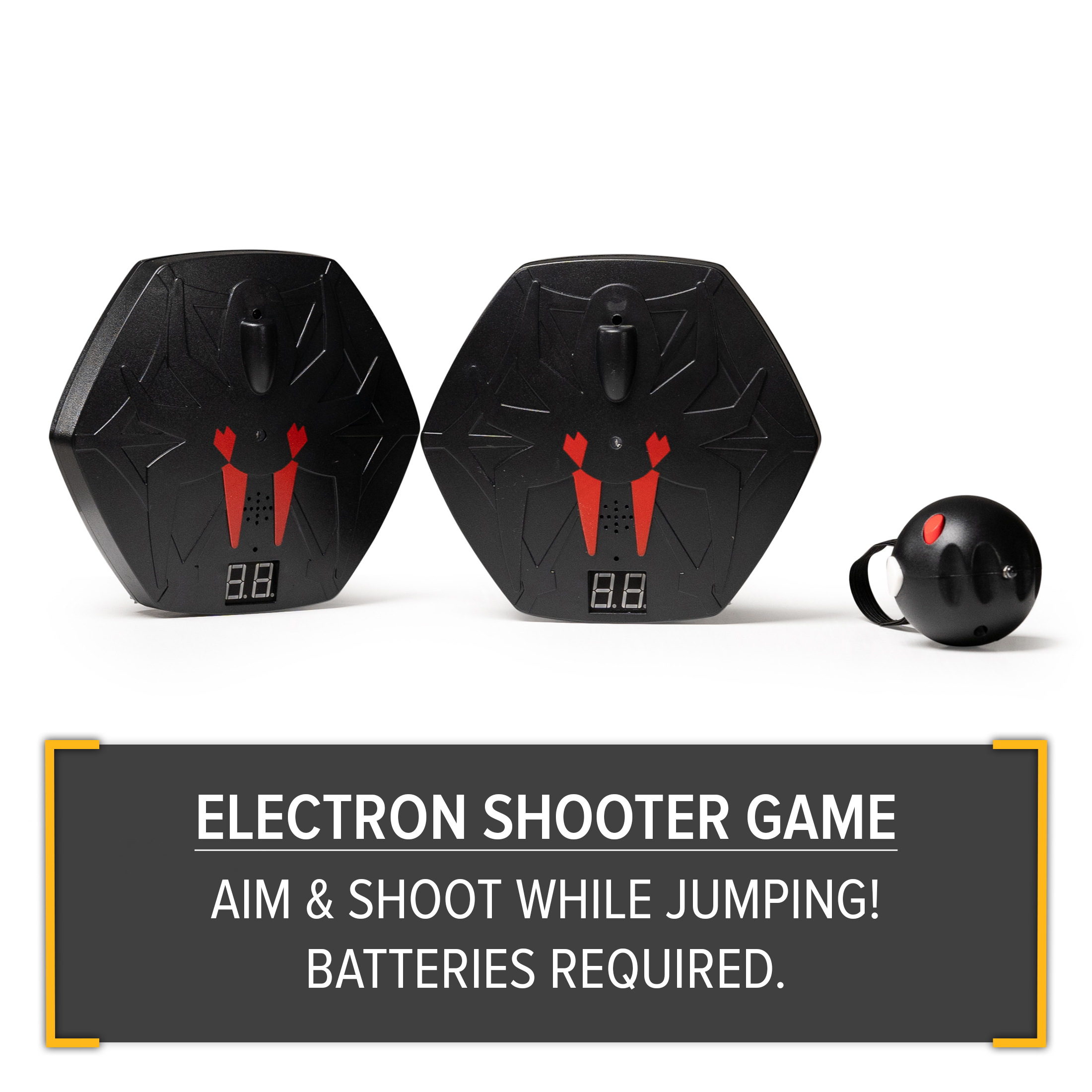 The Bounce Pro 12ft trampoline with safety enclosure will provide hours of active fun for your kids. The frame of the Bounce Pro 12ft trampoline is made of rust-resistant galvanized steel, ensuring its durability and stability. The jump mat and enclosure netting are tested to 2x the industry standard for UV resistance, ensuring that they can withstand harsh weather conditions and prolonged sun exposure without deteriorating. The Bounce Pro 12ft trampoline is equipped with 72 springs, which provide a deep and smooth bounce. This trampoline includes several fun play features including an Electron Shooter Laser Game, Flash Light Zone & Phone Storage pouch. The Electron Shooter laser target game (batteries not included) is an interactive game for kids to play while jumping. The Electron Shooter game is fun and easy to set up. Simply attach the included targets to the top of enclosure poles, activate, then start jumping and shoot targets with the handheld shooter. Also included is the Flash Light Zone which is a light feature that is suspended under the jump mat and is motion activated. As kids jump, flashing lights are activated enhancing visibility and safety and providing kids with extra fun when jumping at night. The phone pouch accessory allows jumpers to securely store their phones while they enjoy their bouncing session. This means that users can keep their phones nearby and easily access them if needed. The Bounce Pro brand is known for its quality and safety standards. Being one of the largest trampoline manufacturers in the world, we have earned a reputation for producing high-quality products and providing great customer service . This trampoline meets stringent safety standards, ensuring that users can enjoy their bouncing experience with peace of mind. The Bounce Pro brand offers US-based customer service, which sets them apart from other sellers who do not have local customer support or comply with safety standards. With high-quality materials, extensive UV resistance and reliable customer service, this trampoline is an excellent choice for a safe and fun bouncing experience. Batteries are required for the Electron Shooter targets and shooters and for the Flash Light Zone.