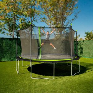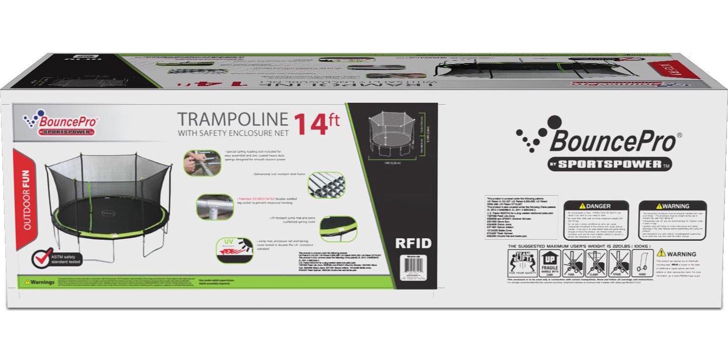 The Bounce Pro 14ft trampoline with enclosure system is a great addition to any backyard. The frame is made of high quality galvanized steel tubes to provide durabiity and stability. The jump mat, spring pad protector and safety enclosure netting are UV resistant and are tested to over double the ASTM standards. The long springs provide a smooth, deep bouncing action which kids love. The safety enclosure system keeps kids safely on the trampoline. The Bounce Pro trampoline is made with quality in mind so parents can rest easy while kids are having hours of bouncing fun.