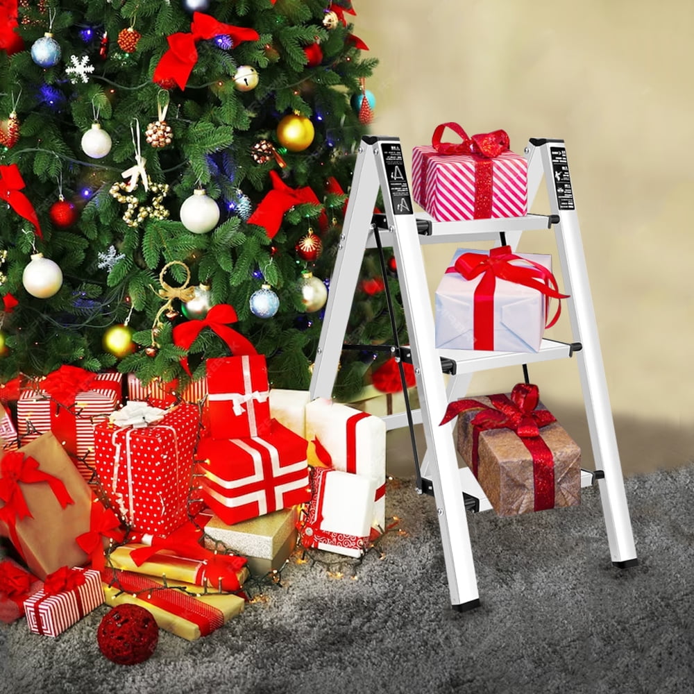 Safety & Stability:This ladder is made of thickened aviation grade stainless steel aluminum alloy, with a specially processed surface that is more wear-resistant and rust resistant. Advanced framework and structure, as well as a load-bearing capacity of 330 pounds, make your use safer and more stable. The lateral brace structure enhances basic support, making you feel safer when using stairs (even on the top step). Anti-slip & Widened Design:The design of the anti slip and widened pedals ensures maximum safety and stability during operation. The size of the thickened pedals is 7.1 “Wx12″Lx1 “H. The widened and thickened pedals have anti slip texture to prevent slipping and provide foot support from heel to toe. They come with anti slip foot pads that fully touch the ground, maintain stability, and prevent scratches on the floor. (Note: Always place on a flat surface) Multi-functional 3 Step Stool:This multifunctional household ladder can be used in various scenarios, suitable for homes, kitchens, bedrooms, and household use. Decorate the Christmas tree, paint the walls, enter the top shelf, closet, and bathtub. The modern footstool is perfectly matched with home decor with a charming golden appearance. It can be used as a plant support, bedside table, and more!. It is also a small footstool for adults and child. Folding Design & Space-saving:The foldable and lightweight design of the 3 step ladder enhances its portability. When folded, the 3 step stool is only 2 Inch wide, saving you space. The 9 pound ladder is easy to carry and suitable for indoor or outdoor use. It folds tightly and is suitable for narrow areas. When idle, it can be placed against the wall or corner, under the bed or in a cabinet for storage. Warranty Service: You can receive a one-year warranty, 24-hour customer service, and a 100% refund guarantee. If you have any questions, please feel free to contact us and we will spare no effort to assist you.
