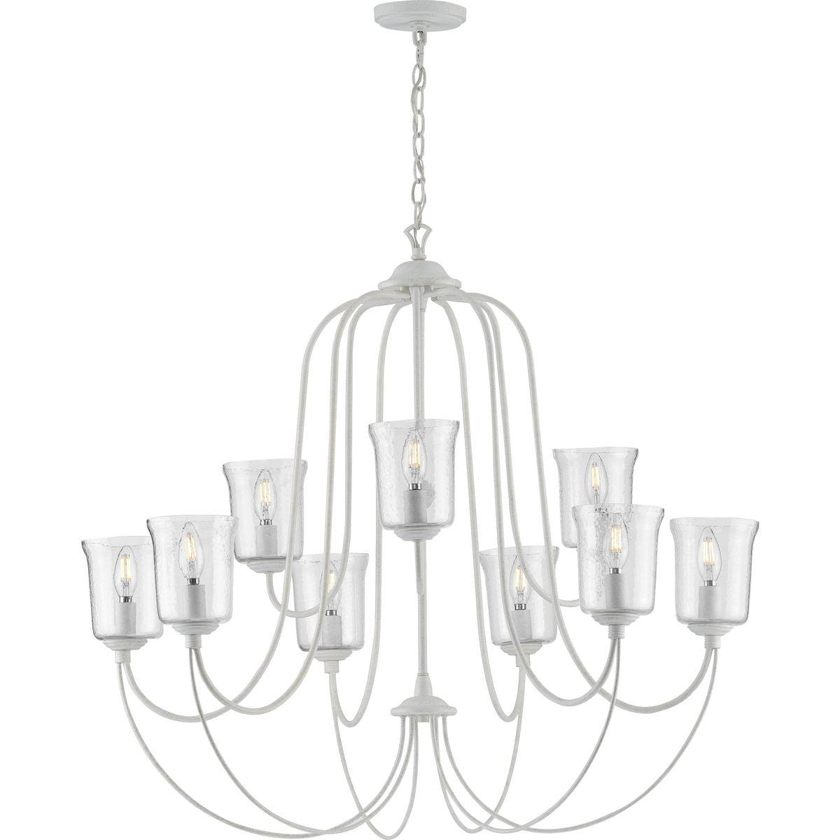 Bowman Collection Nine-Light Cottage White Clear Chiseled Glass Coastal Chandelier Light