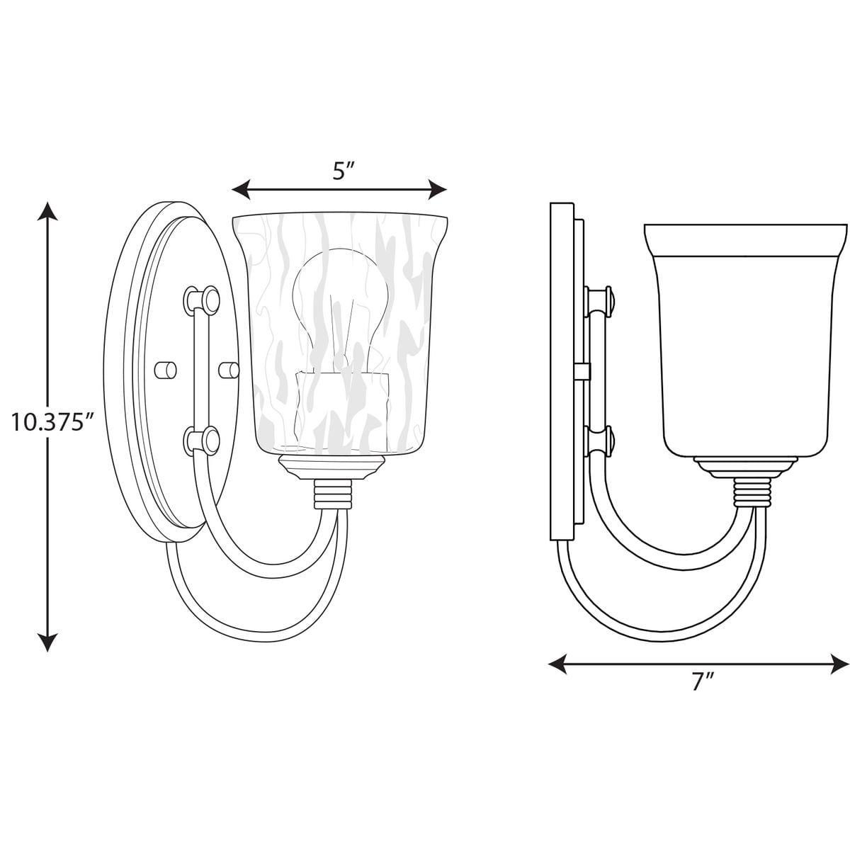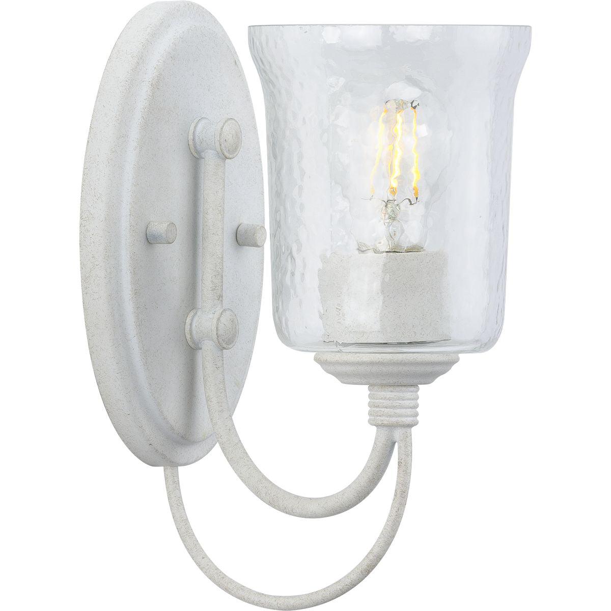 Beautiful lighting will appeal to both your classic taste and your artistic spirit with this bath light. Wandering eyes will focus on a clear chiseled glass shade as it offers an air of refinery. A handsome cottage white light base is supported by a dainty curved arm to complete the elegant design.