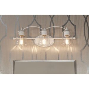 Bowman Collection Three-Light Cottage White Clear Chiseled Glass Coastal Bath Vanity Light