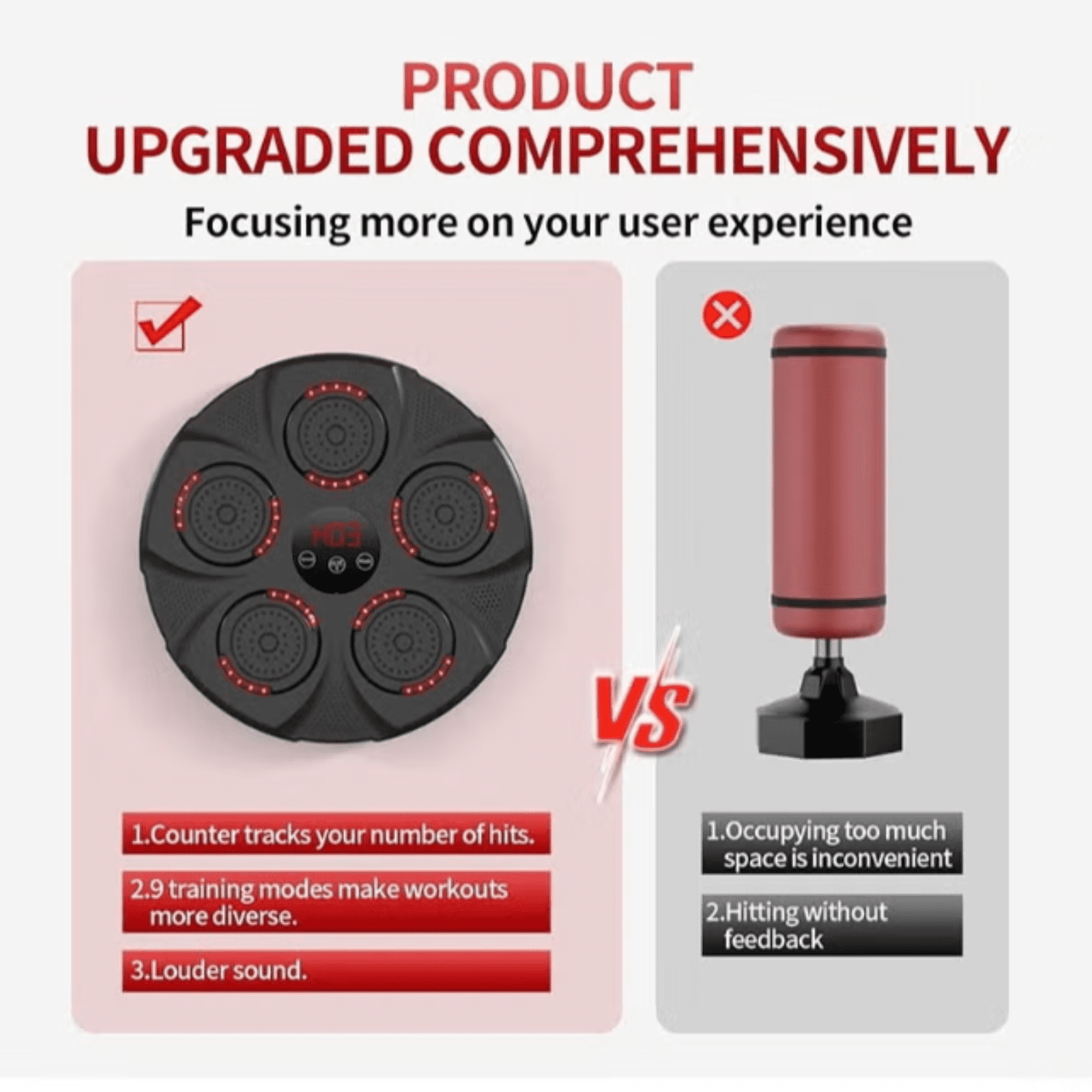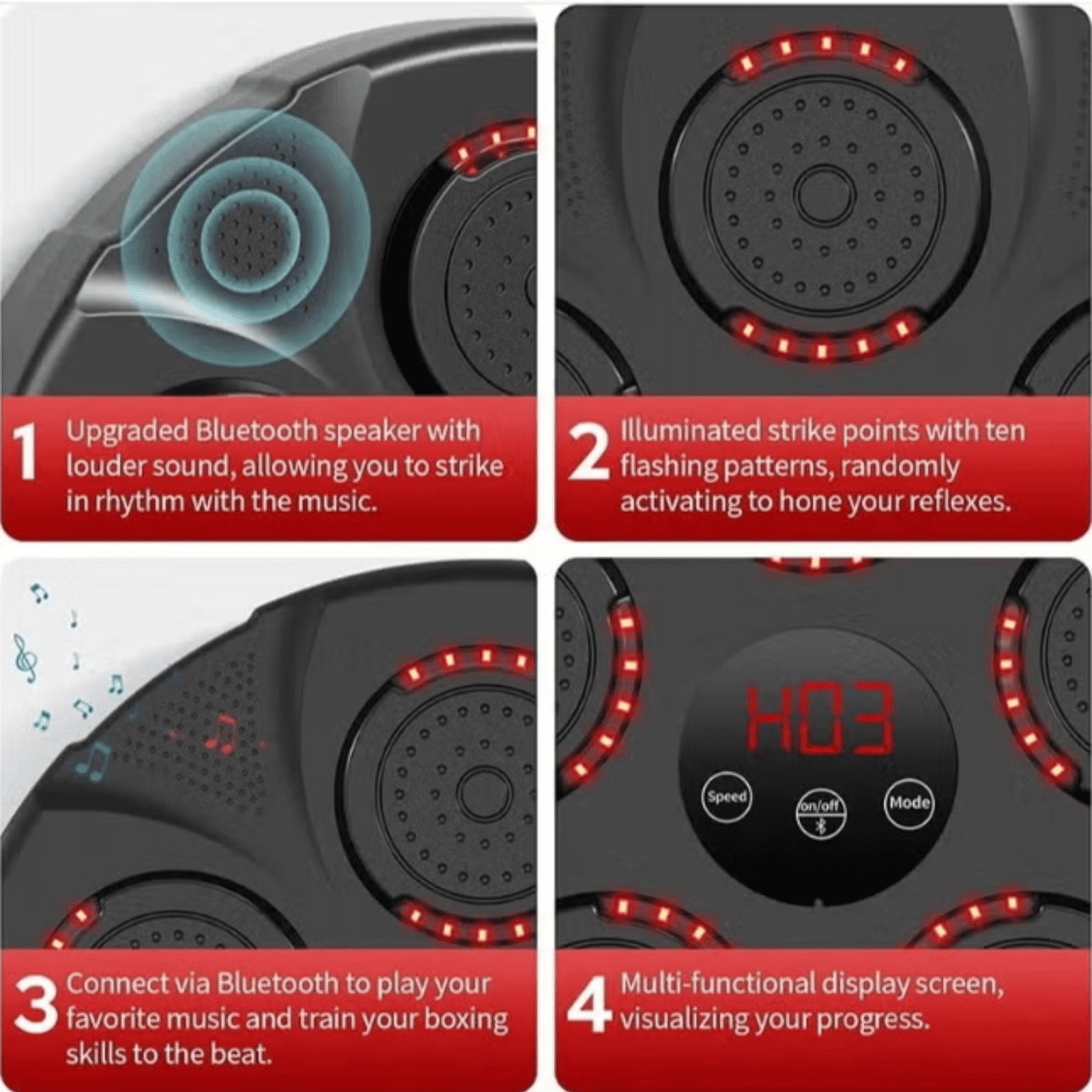 Material: Its impact surface is fully covered with soft materials, with elastic impact and unique shock absorption design, providing comfortable care for users’ hands. The other parts are made of PU material, which is durable, adaptable, and easy to operate. Free boxing gloves and USB charging cable. Smart Chip: The default speed of the boxing machine is H01, and the speed gradually increases with each press of the button. There are 9 strike modes that can be adjusted, intelligently recognizing the rhythm of music. The faster the rhythm, the faster the flashing red light, the smoother the fist, and the ability to count can also be achieved. The purpose is to exercise hand eye coordination and reaction ability. Full Surround Speaker: The boxing machine can easily connect to intelligent speaker, allowing music to play freely. Enable users to experience the rhythm of music movement during use. Equipped with high-quality amplified speakers and customized full frequency units, the high pitched sound is clear, and the low pitched sound is rich, accurately reproducing every note. The experience has been greatly enhanced. Easy Installation: The box wall target is sturdy and durable, small in size, lightweight and portable, saving usage space, and free from punching. There are two installation methods, the first one is nano adhesive, which has a highly adhesive effect. Tear off the protective film and directly stick it to the corresponding wall surface, without causing damage to the wall. The second type is the included Magic Tape installation , which is simple and fast, and the height can be freely adjusted. Wide Application Range: This boxing machine is suitable for users of different age groups, whether they are office workers or those with daily exercise needs, whether they are people with stress relief needs or those who love boxing, they can use it. This boxing provides users with fitness and stress relief needs, and the Bluetooth music mode is an excellent accessory for physical and mental relaxation and sports companionship. You can give it as a gift to your family and friends in need.