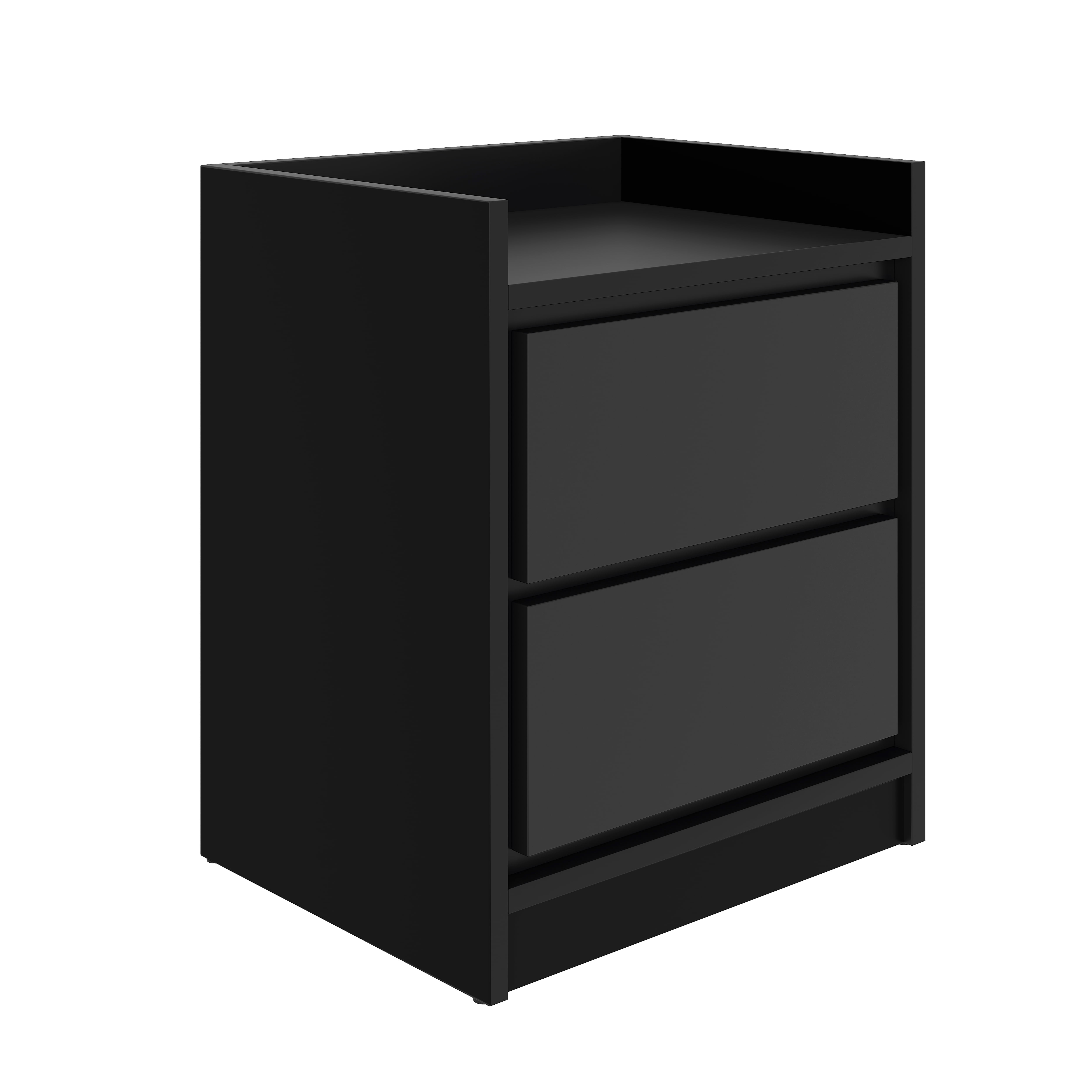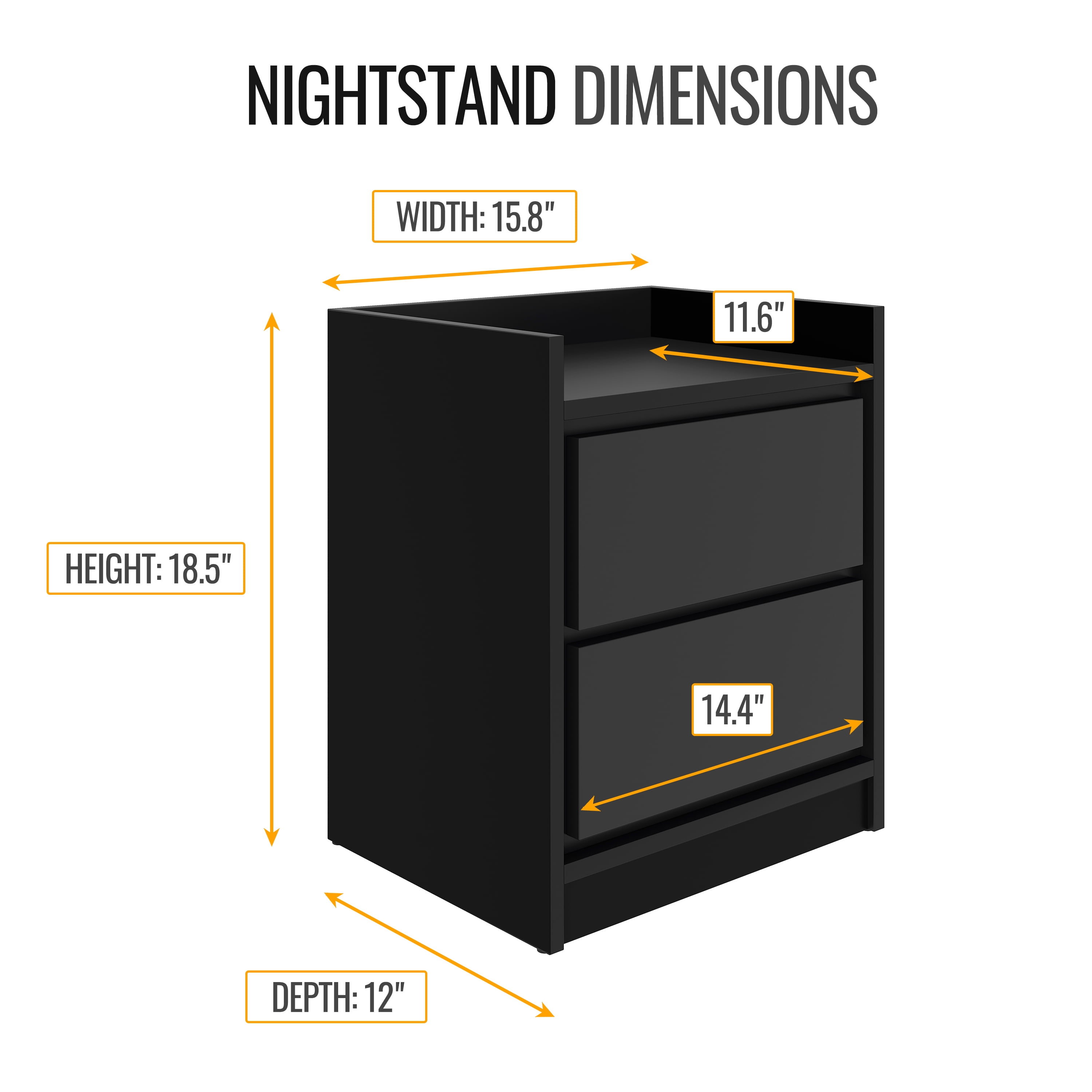 Essential bedroom nightstand with swing door One nightstand included Works great with low profile beds Assembles in 15 minutes or less Dimensions: 19″H x 12″L x 16″W Particle Board With Laminate Mid-century modern wood design; Complements low profile beds, platform bedframes, and modern office furniture alike Edge-trimmed top keeps items from rolling or falling off; Sold as a single nightstand Low profile nightstand features a unique slotted panel, swing open drawer For added convenience, assembly for this nightstand is fast and simple, and includes all tools necessary to construct Includes a limited 1 year manufacturer warranty