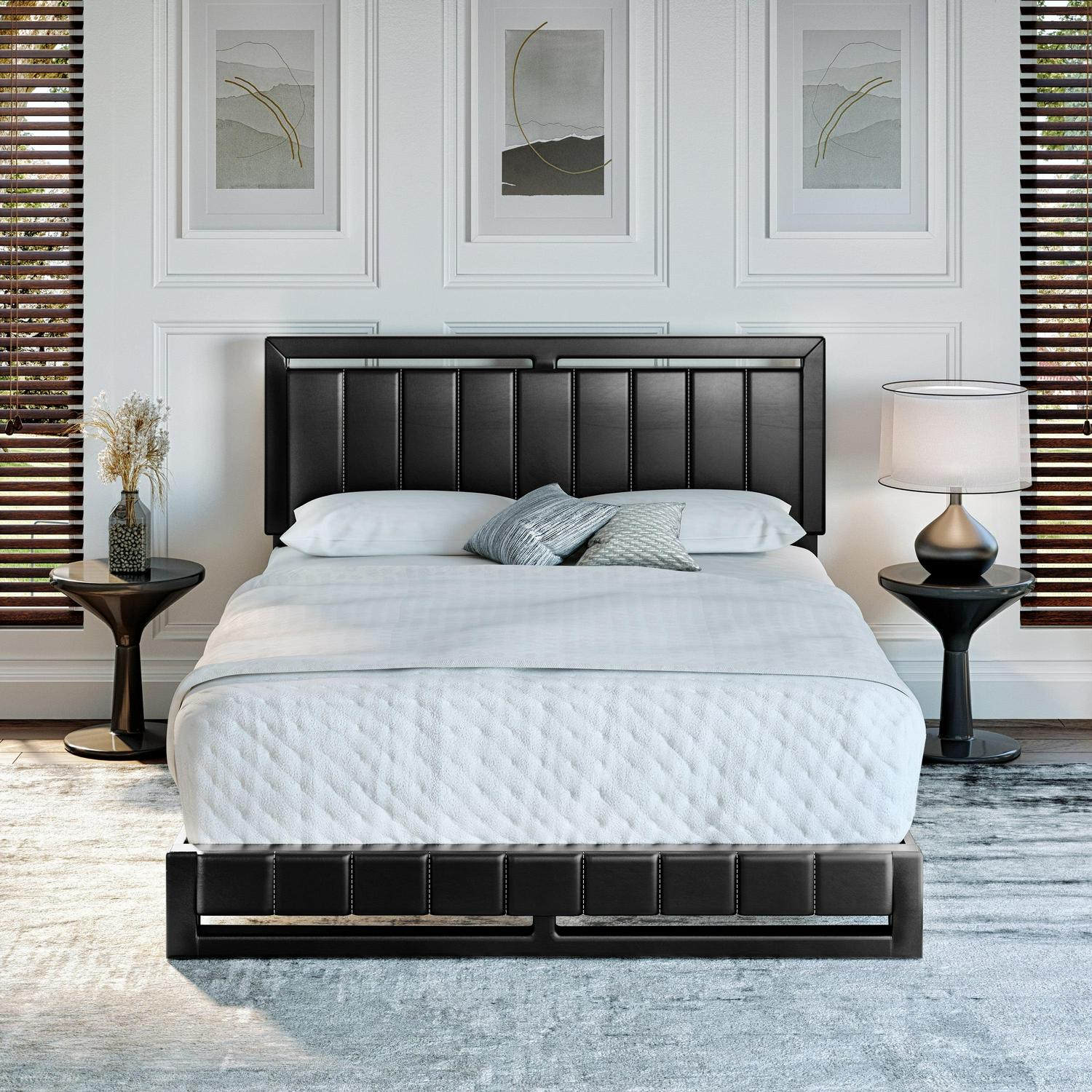 Boyd Sleep Beaumont Upholstered Faux Leather Platform Bed, Queen, Black