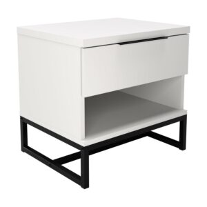 – Organized Storage Options: This one drawer modern nightstand provides a flexible combination of hidden and open storage. The drawer interior measures 16″ W x 2.375″H x 12.5″D: its smooth easy-glide drawer mechanism opens quietly and closes effortlessly, providing a safe spot to store personal items. An open lower shelf keeps books or electronics within easy reach.