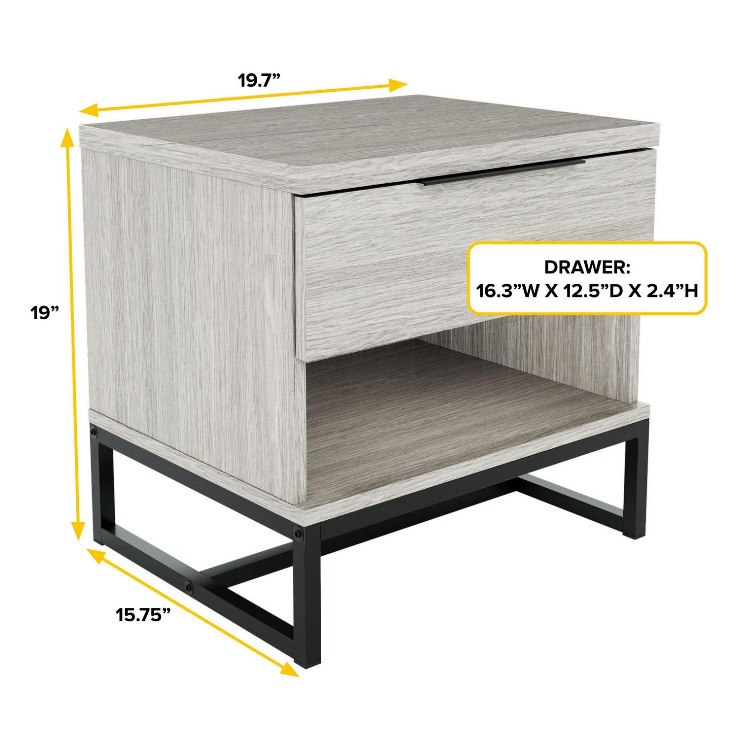– Easy 30 Minute Assembly – With clear instructions and all necessary hardware included, assembling this nightstand is a breeze. Spend less time on complicated assembly and more time enjoying the style and organization it brings to your space. Philips screwdriver required (not included). Black tubular steel base provides stability and a touch of industrial style.
