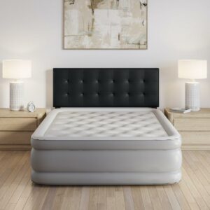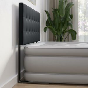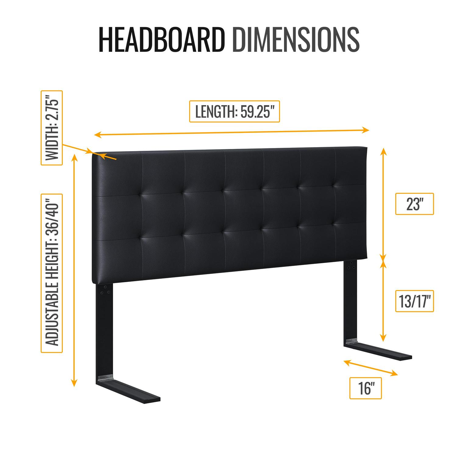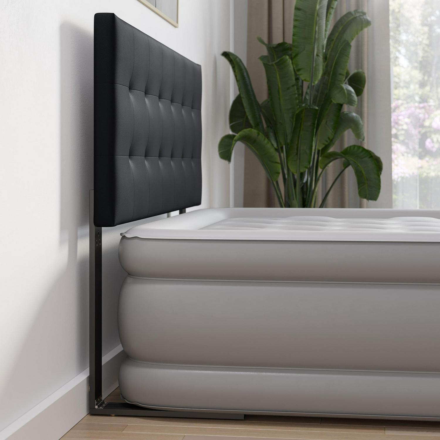 No installation, no mess: the Boyd Sleep Faux Leather Instant Adjustable Headboard is an instant upgrade for your bedroom. Simply slide the L-shaped metal legs under your mattress to anchor, and voila! Your new headboard is ready in a flash. Give your guests the comforts of home; this Premier headboard makes the perfect pair with air mattresses. Its faux leather upholstery is tufted and padded with allergy-friendly polyester for a premium look and feel. Adjustable legs raise the upholstered headboard from 36 to 40 inches in height, which means you can easily swap between thicker or thinner mattresses. Best used with a Queen or Full/Double size bed, but can anchor under any mattress 20 inches or wider. Ships in 1 box and assembles in minutes. All hardware and tools are conveniently zipped up in the back of the headboard. The Premier Faux Leather Instant Adjustable Headboard is the fastest way to dress up any bed in your home.