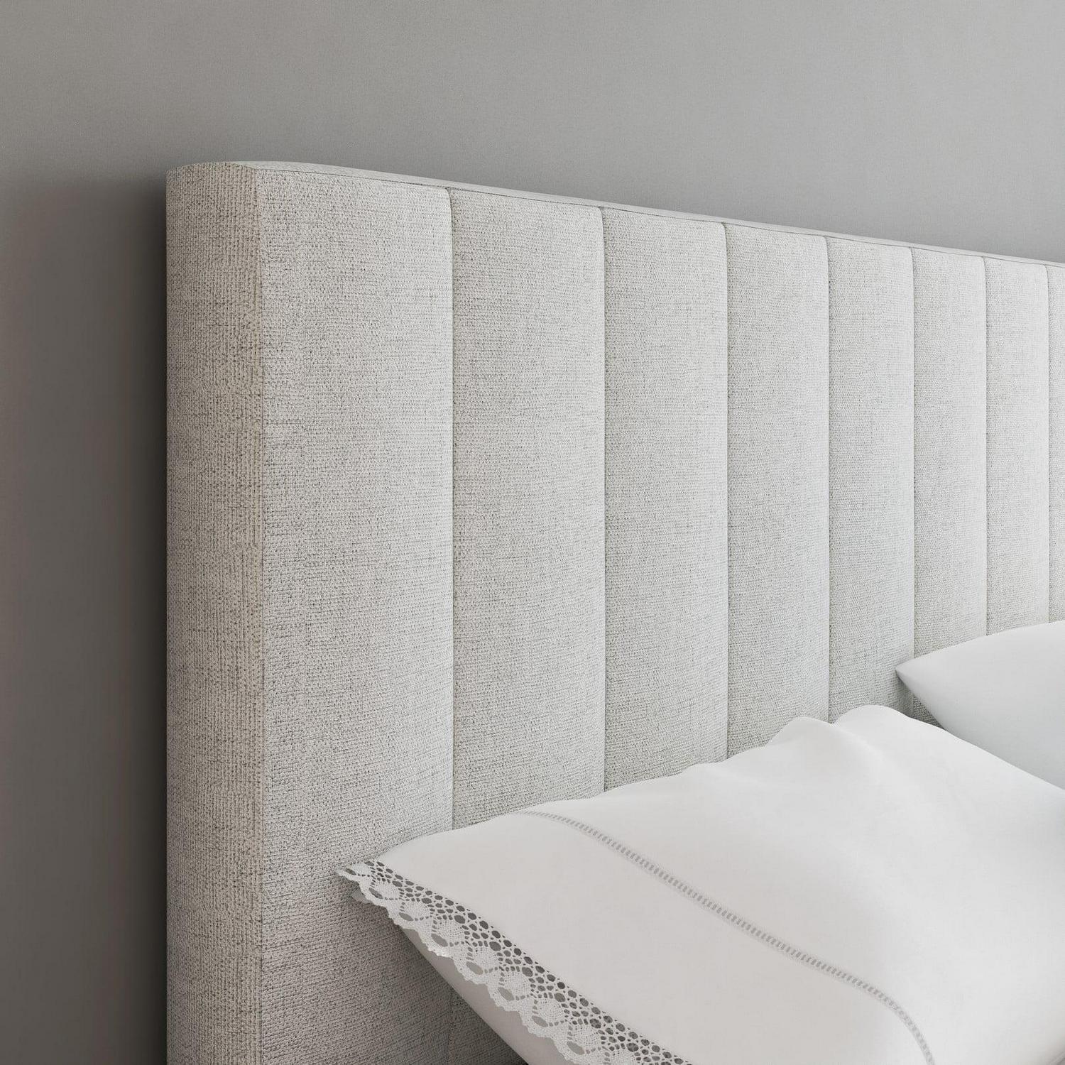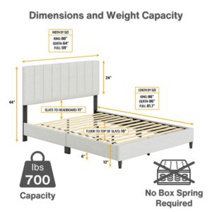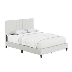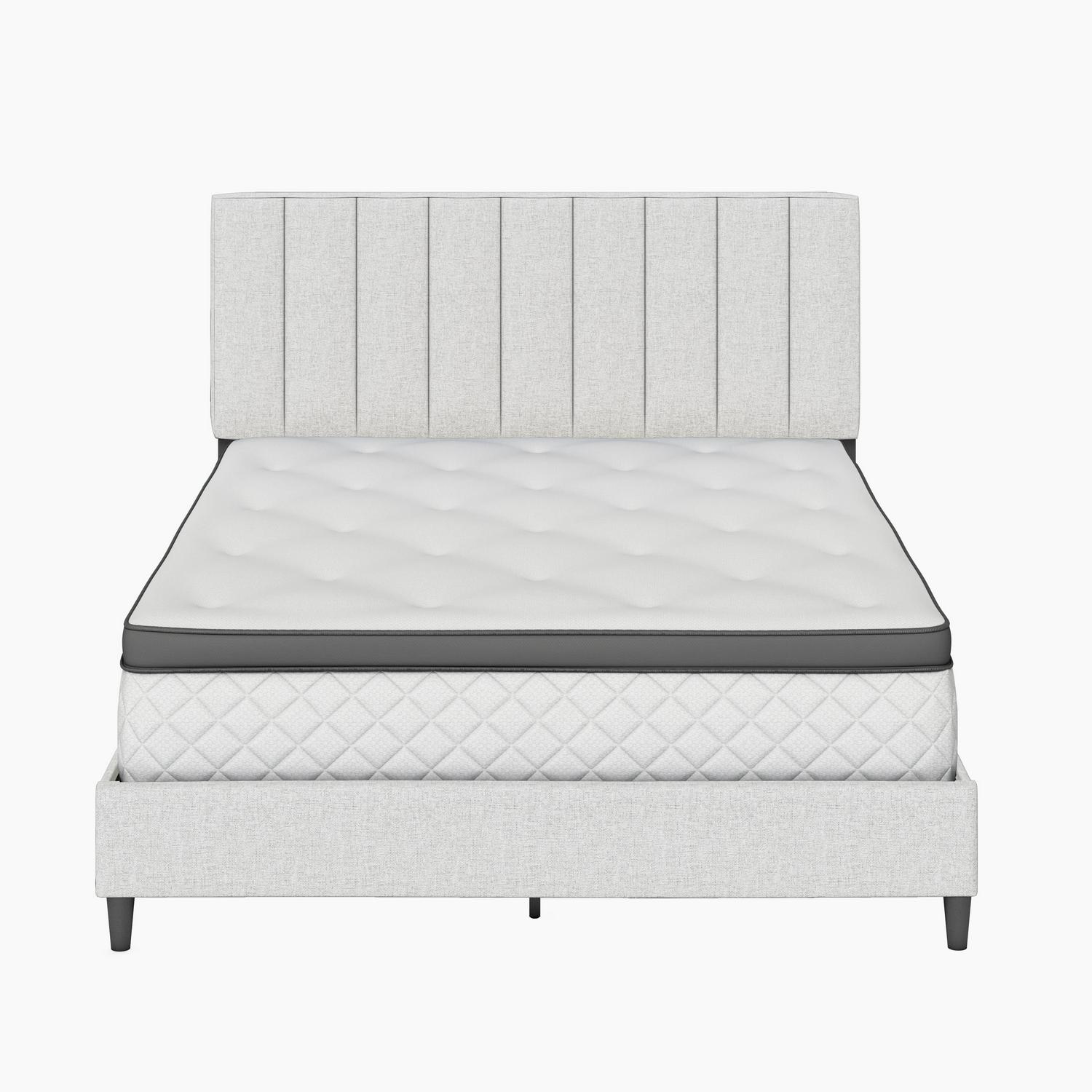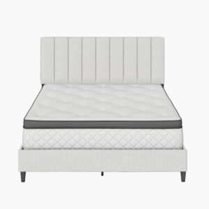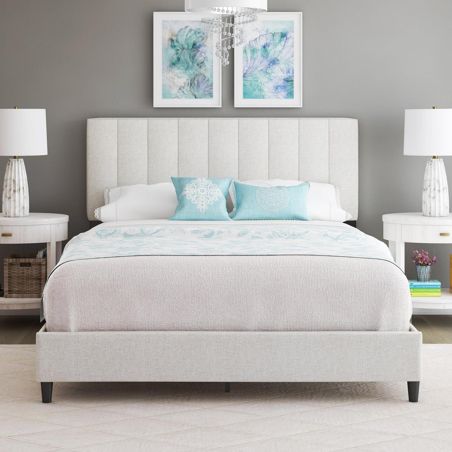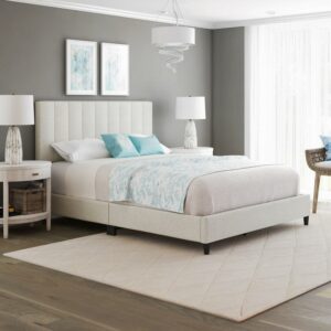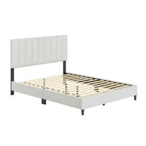 Boyd Sleep Leah Linen Platform Bed Frame with Upholstered Headboard, Off White, Queen