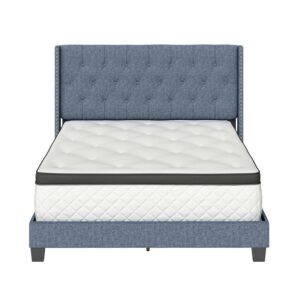 Boyd Sleep Mia Linen Panel Upholstered Platform Bed Frame, Blue, Queen
