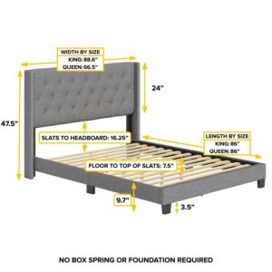 - Tufted Linen Platform Bed with Nail Head Trim Side-wings