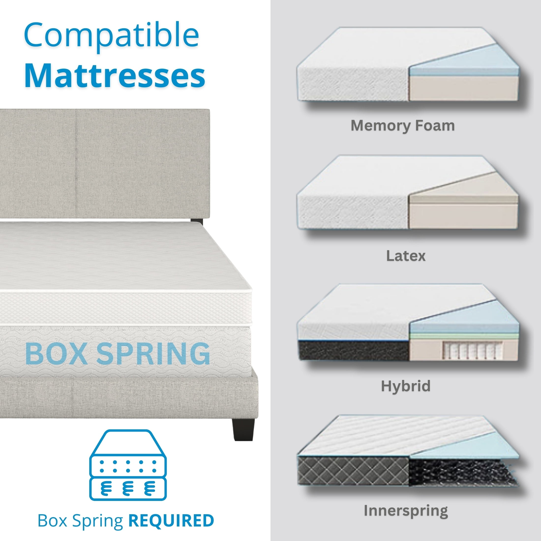 Boyd Sleep Milan Off White Linen Full Size Fully Upholstered Platform Bed Frame with Headboard, Qualified Box Spring or Foundation Required for Use