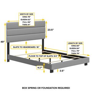 Boyd Sleep Napoli Upholstered Faux Leather Tri Panel Channel Headboard Platform Bed, Twin, Gray
