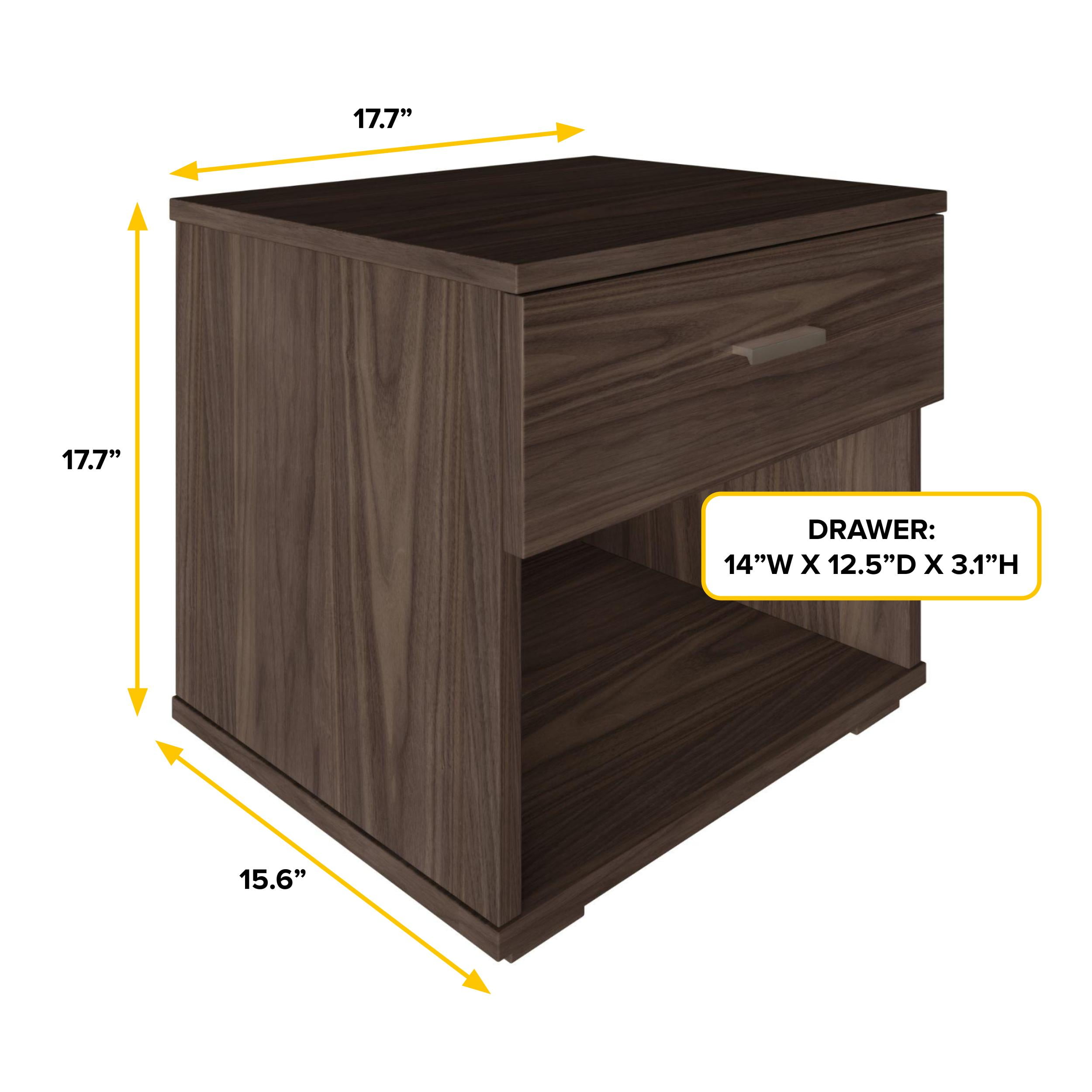 Modern 1-Drawer Nightstand: The Boyd Sleep Novara Nightstand adds contemporary and modern style to your bedroom. Available in four wipe-clean laminate finishes, its clean lines and modern look make it a versatile accent piece. Add a touch of sophistication and extra storage to your bedroom, guest room, or any space that needs practical organization. Organized Storage Options: This one drawer modern nightstand provides a flexible combination of hidden and open storage. The drawer interior measures 14″ W x 3.125″H x 12.5″D: its smooth easy-glide drawer mechanism opens quietly and closes effortlessly, providing a safe spot to store personal items. A large lower cubby keeps books, electronics, or bedding within easy reach. Space-Saving & Economical – At 17.7” W x 15.6” D x 17.7” H, this nightstand offers practical storage solutions without taking up too much floor space. Its compact one-drawer design allows for efficient organization, making it a perfect choice for smaller bedrooms, apartments, dorm rooms, or limited spaces. Maximize your storage potential in small spaces with this modern bedside table. Versatile & Multifunctional – This nightstand isn’t limited to just bedside use. Its compact size and versatile design make it an ideal choice for use as a side table or end table in any room. Place it in your living room or home office to add a touch of modern style and provide extra storage space. The Boyd Sleep Novara Nightstand provides a sleek and contemporary accent next to your sofa, armchair, couch, or desk. Easy 30 Minute Assembly – With clear instructions and all necessary hardware included, assembling this nightstand is a breeze. Spend less time on complicated assembly and more time enjoying the style and organization it brings to your space. Philips screwdriver required (not included).