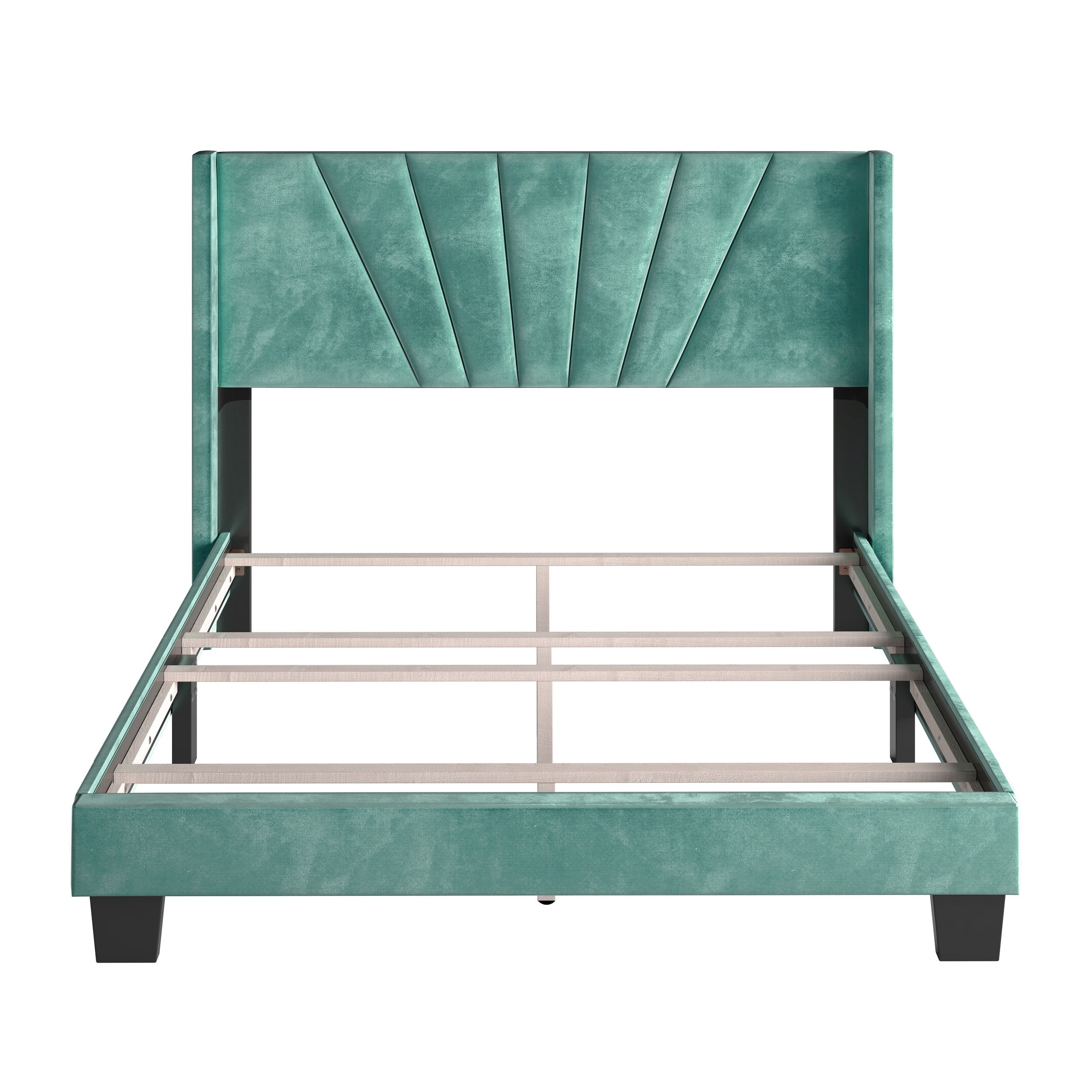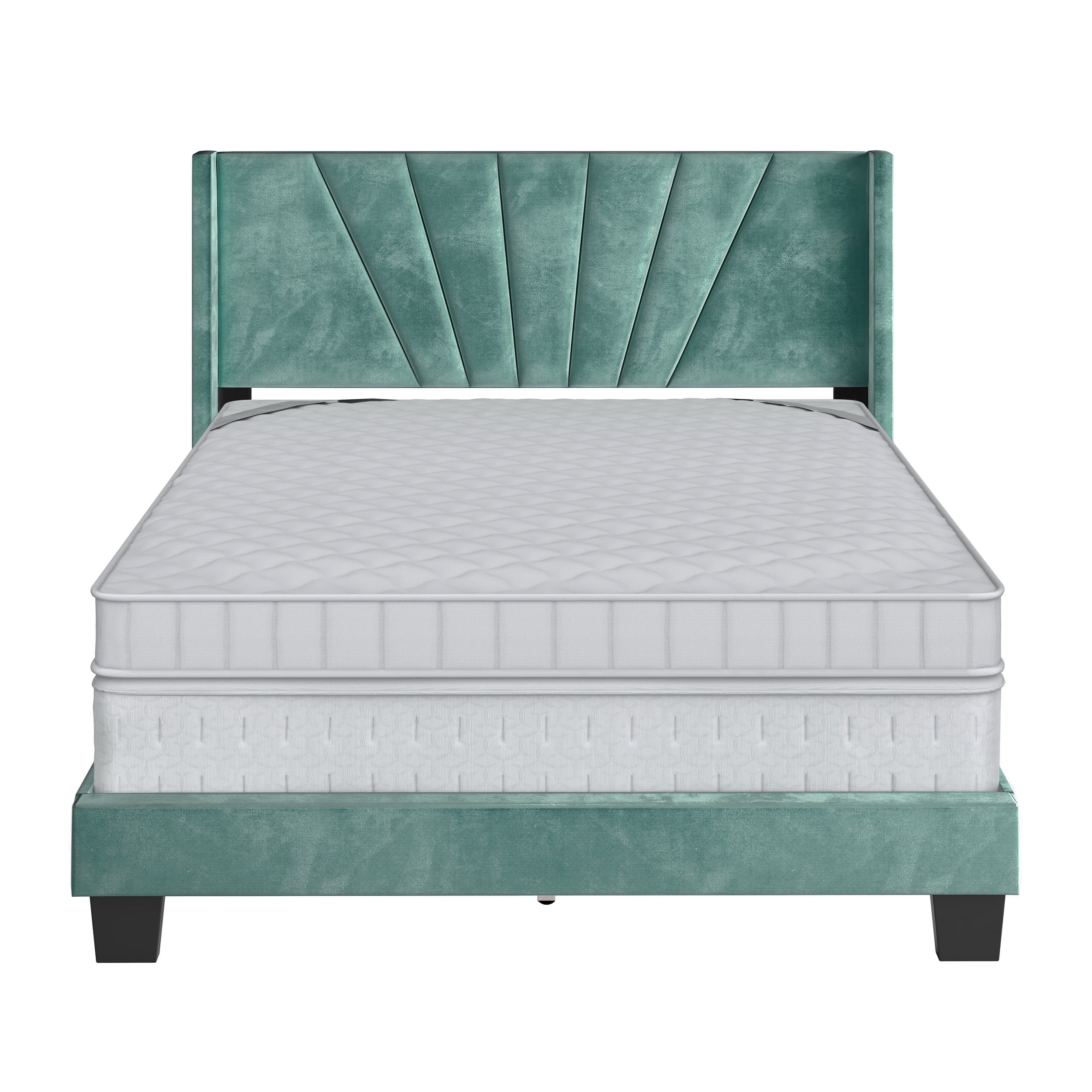 The Boyd Sleep Valencia Velvet Upholstered Platform Bed Frame will make any room more inviting. With its rich, velvet vertical line design and remarkable color, the Valencia will be the centerpiece of your bedroom or guest room. This beautiful bed frame will fit well in both contemporary and traditional decor styles. The vertical lines of the headboard gently spread from bottom to top, and subtle side wings provided depth. The Valencia is constructed with heavy duty center support legs and 4 birch cross slats. This bed is both beautiful and sturdy. A box spring or foundation is required. Available in Aqua or Classic Blue.
