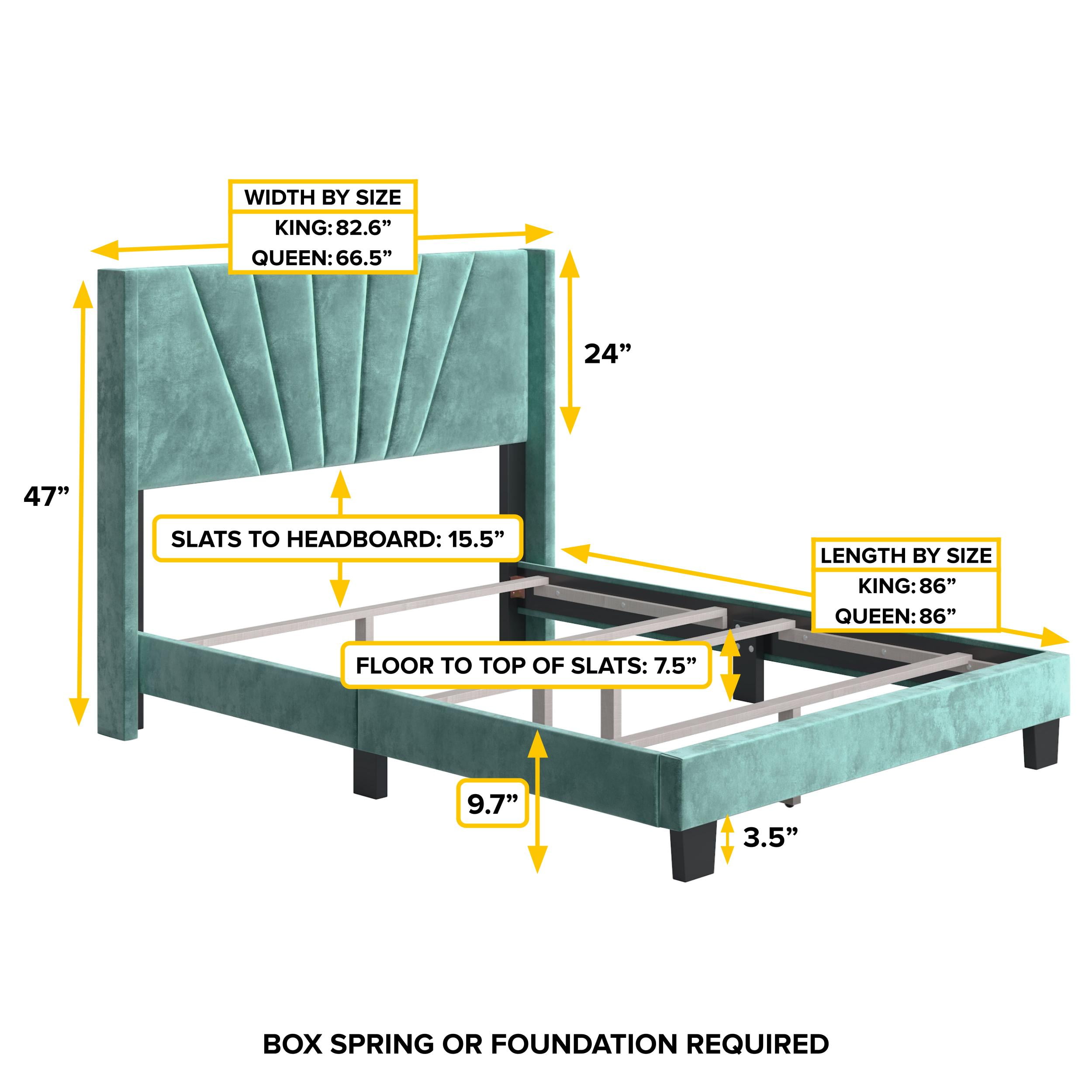 Boyd Sleep Valencia Aqua Velvet King Size Fully Upholstered Platform Bed Frame with Adjustable Headboard, Qualified Box Spring or Foundation Required for Use
