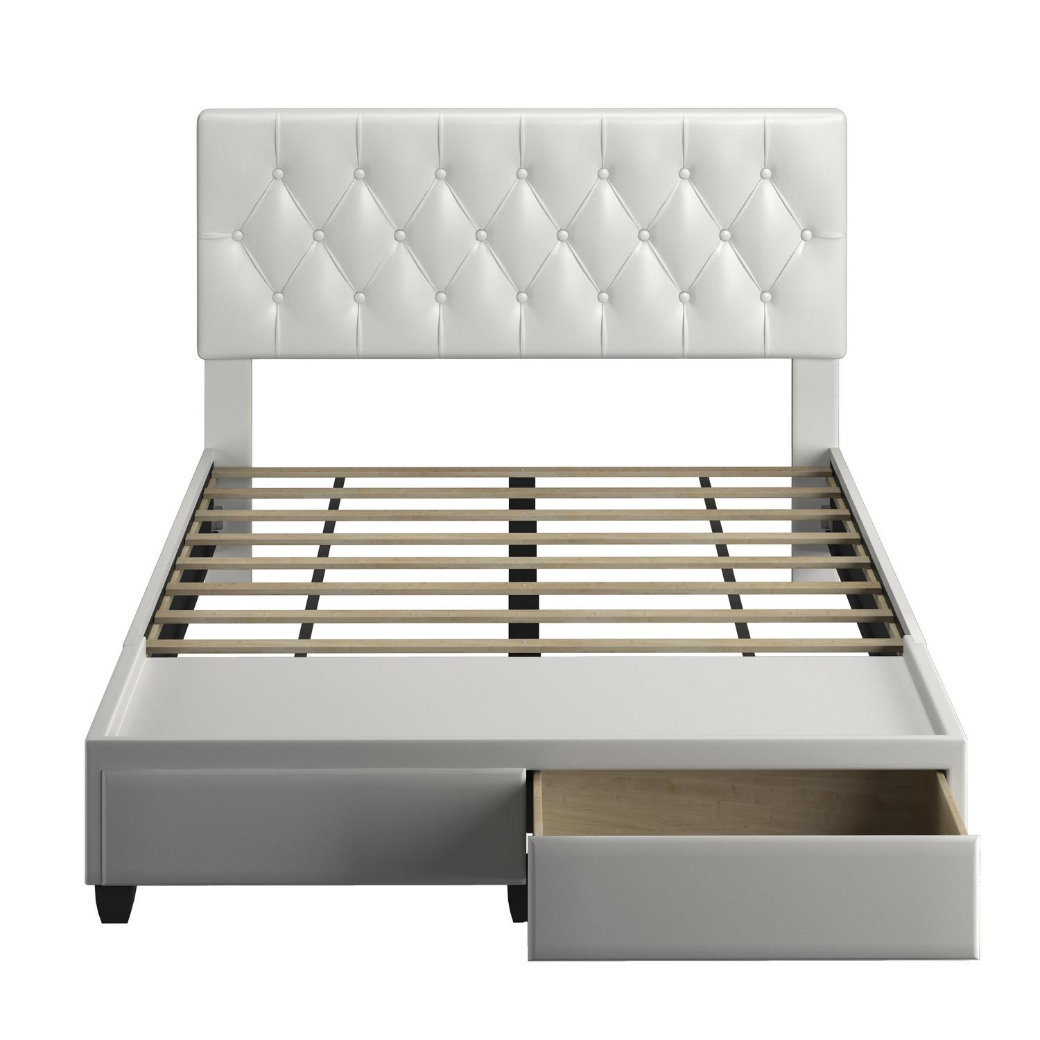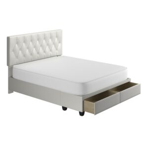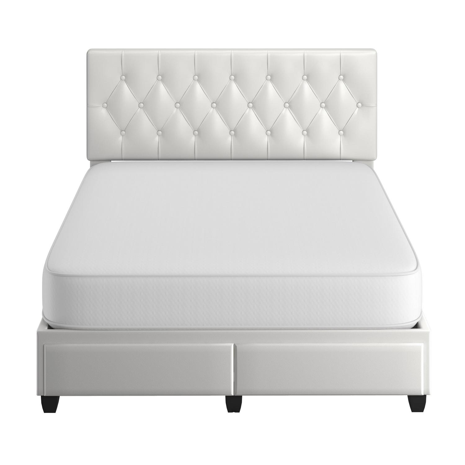 Boyd Sleep Verona Faux Leather Upholstered Tufted Platform Storage Bed Frame, Queen, White