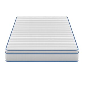 – 8″ Hybrid Bonnell innerspring mattress with a combination of pressure relieving memory foam and sturdy coil spring support