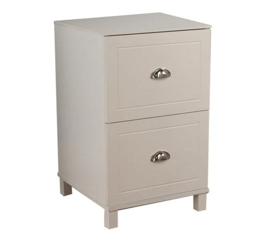 Number of drawers: 2 Type: Vertical file cabinet Material: Wood Composite Fits Paper Size: Letter 8.5″ x 11″ Locking Capabilities: Unlockable Features: Without castors Safety: Not fireproof Finish: White Assembly: Required Package Dims: 26.5″ x 18.5″ x 6.5″H Assembled Dimensions: 16.8″ x 15.75″ x 26.5″H Interior drawer measures are 9.5 inches high x 12.5 inches wide x 14.5 inches deep
