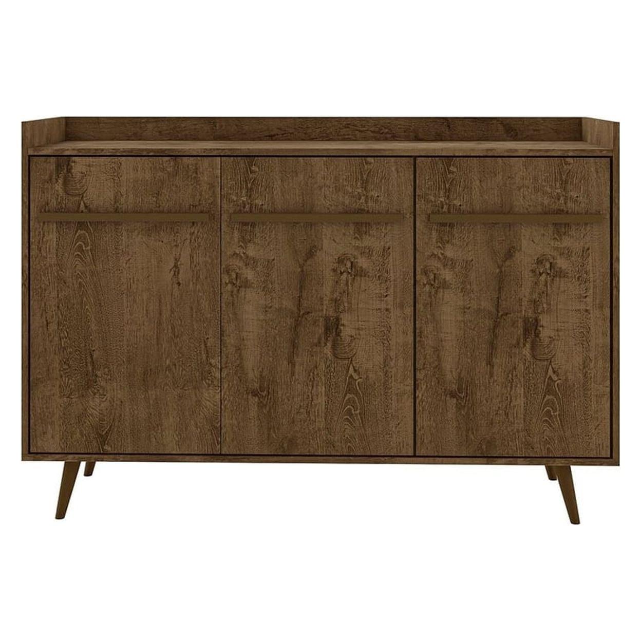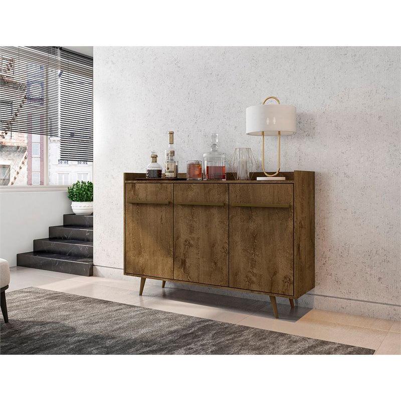 Bradley 53.54 Buffet Stand with 4 Shelves A lesson in design and entertaining, the Bradley buffet sideboard takes your dining or living space to the next level turning you into the hostess with the chicest style. Create the dinner party you ve always wanted, with easy functional storage and concealed areas perfect for tucking away dishes, linens, and stemware. Durable splayed legs and expert craftsmanship offer a classic Mid-Century aesthetic and keep this piece feeling trendy and timeless all at once. Transform it by creating a bar area up top, or use it to display candlesticks, fresh flowers, refreshments, or framed family photos.