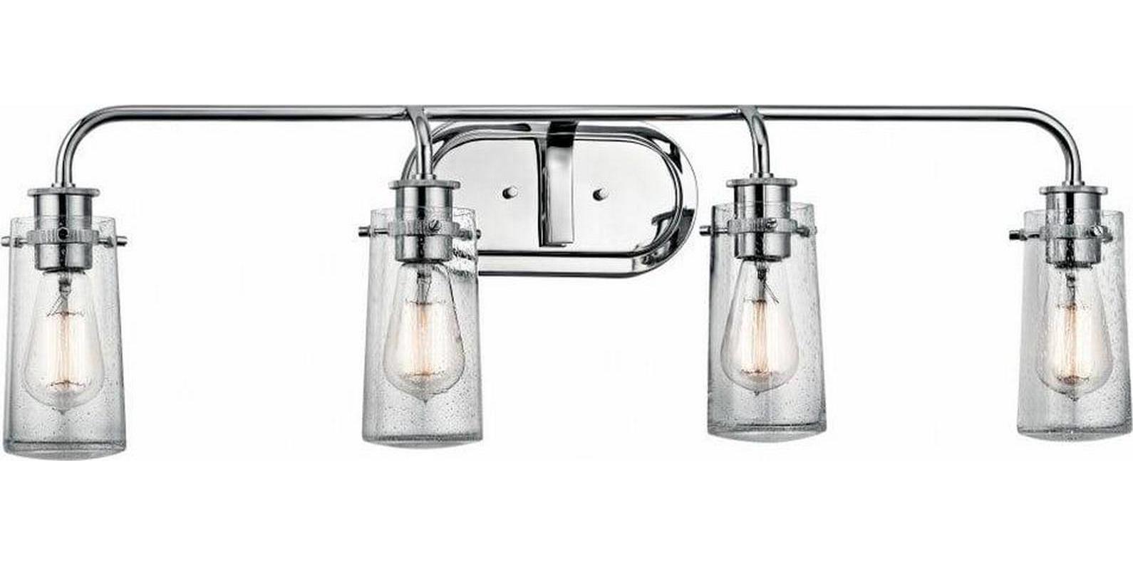 Kichler Lighting-45460CH-Collection: Braelyn, Material: Steel, Finish Color: Chrome, Width: 34.25″, Height: 10.25″, Depth: 7.25″, Height From Outlet Box: 2.5″, Backplate Width: 8″, Backplate Length: 4.75″, Lamping Type: Incandescent, Number Of Bulbs: 4, Wattage: 60 Watts, Dimmable: No, Moisture Rating: Damp Rated, Desc: UL>,-Braelyn – 4 Light Bath Vanity Approved for Damp Locations – with Vintage Industrial inspirations – 10.25 inches tall by 34.25 inches wide-Chrome Finish