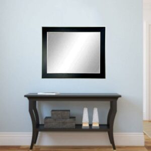 The BrandtWorks Designers Choice Wall Mirror – Black creates incredible contrast with a thick, black frame surrounded by a sleek silver inner and outer trim. This jaw-dropping wall mirror boasts a tall silhouette for full-body reflection. Use the included hardware to mount it horizontally or vertically and select from several available sizes.